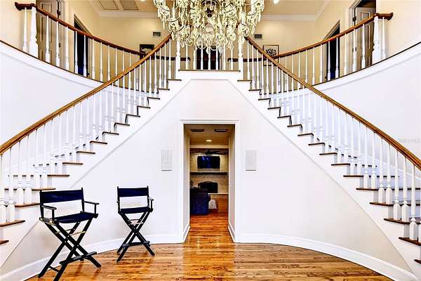 Set on 4.5 private acres, this stately estate evokes the quiet confidence of old-world wealth, where scale, symmetry, and thoughtful craftsmanship draped in custom millwork not often seen in Florida take center stage. A grand entrance welcomes you with an architectural staircase that immediately sets the tone—elegant, commanding, and unforgettable.