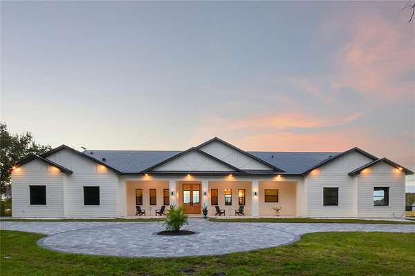 Welcome to an extraordinary 2025 luxury modern farmhouse estate, offering 3,591 square feet of refined heated living space and 5,595 total square feet of thoughtfully crafted design. Set on an expansive, seaplane-friendly lakefront property, this residence blends modern elegance with timeless farmhouse character to create a lifestyle of comfort, sophistication, and privacy.