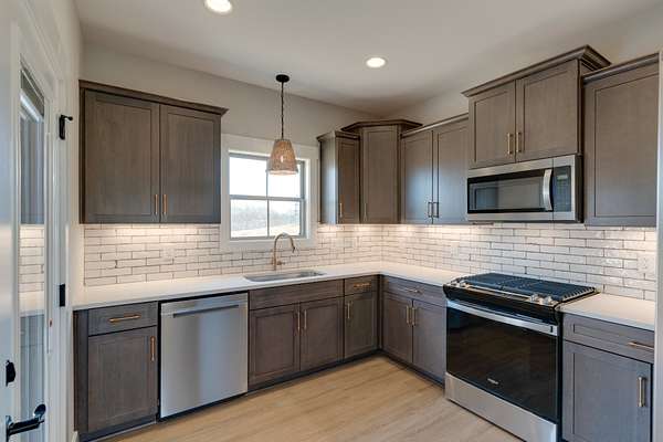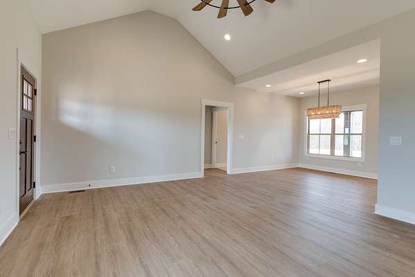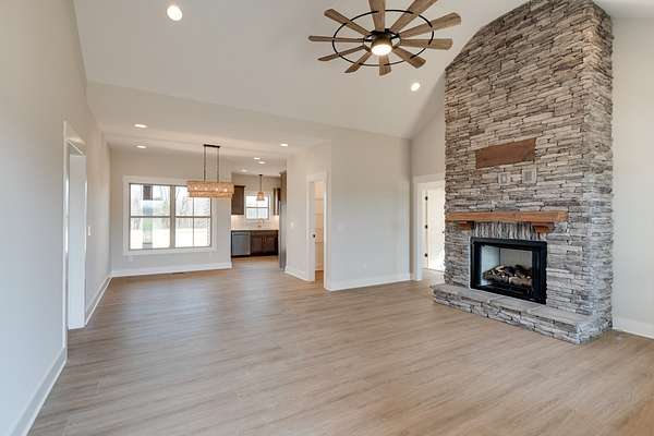 Set on over 3 scenic acres, this beautiful 3-bedroom, 2-bathroom new construction home offers peaceful country living with plenty of room to roam. Open floor plan with vaulted ceilings and a gorgeous stacked stone fireplace in the living room. The kitchen boasts stainless appliances, granite, undercabinet lighting, backsplash, and an oversized pantry. Laminate and granite throughout with tile in both bathrooms and utility room. In the spacious primary suite you have a trey ceiling, beautiful tile shower, garden tub, and a walk in closet. Outside, you will find a large covered patio to relax and enjoy nature. No HOA! Lender credit of 1% and free appraisal when you use preferred lender Kevin Kenerson 615-390-7534 with Lending Hand Mortgage. Backsplash is being redone.