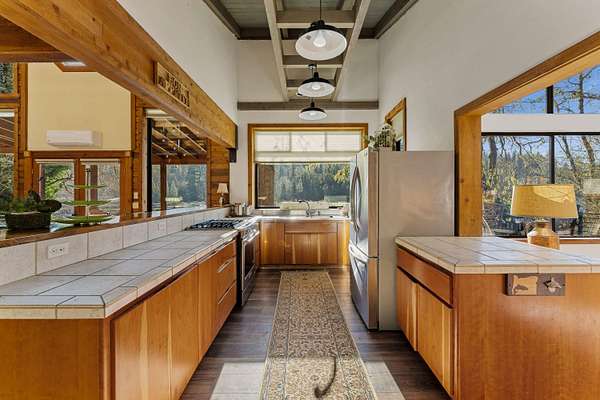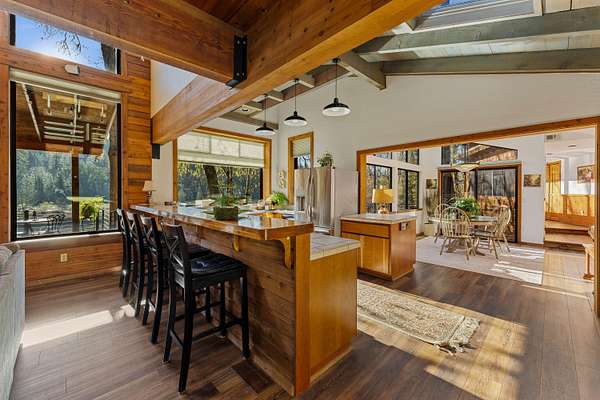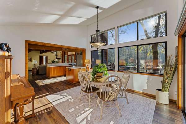 Live the Riverfront Dream! Welcome to your private retreat on the stunning Rogue River! This custom-built cedar shingle home is designed to bring the outdoors in, with expansive walls of glass offering breathtaking river views from nearly every room. Whether you're sipping morning coffee or a glass of wine in the evening on the spacious deck, you'll find peace and tranquility in every moment. Inside, the newly updated kitchen is a true showstopper- perfect for entertaining. Thoughtful craftsmanship is evident throughout with a blend of wood, tile, brick, and a striking Montana rock fireplace insert that adds warmth and charm on cool evenings. The romantic primary suite offers ultimate privacy with a split floor plan, complete with a generous walk-in closet, dedicated office space, and serene river views. A separate game loft with a pool table overlooks the water, creating a fun space to relax and unwind. See more in Private Remarks.
