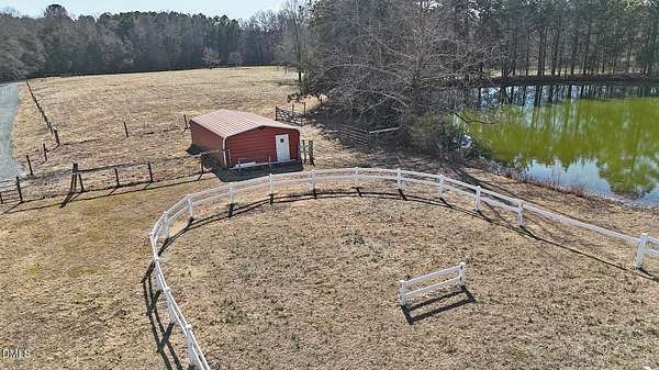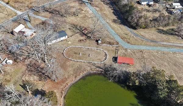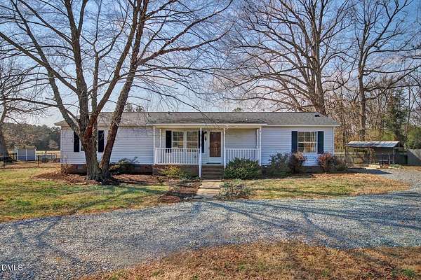 Great value - this place is perfect in so many ways: Unrestricted, beautiful 8+ acre level lot featuring a Pond, several Fenced Pastures. Many structures including a riding Ring, 2-stall Barn, fenced Vegetable Garden with Shed, covered Chicken Coop, mature hardwoods, and those incredible wide-open sky views! Property includes the charming circa-1900s historic Rumley House--ideal for a hobbyist, workshop, or extra storage--with covered outdoor workspace and Shop Rooms inside. The move-in-ready 2002 Double-wide Home offers 3 BR/2BA, vaulted ceilings, all fresh paint inside & out, and brand-new LVP flooring in most rooms. Covered Front Porch (concrete floor), side concrete Patio, brick foundation with Crawl Space (newly installed 15-mil vapor barrier), freshly graveled Circular Drive, detached 2-car Carport, and fenced back yard. Recent updates include a newer roof and HVAC (2020). Bright and open interior: Front Living Room with corner gas-log fireplace and new LVP floor. Spacious Eat-in Kitchen boasts tons of counter space and storage, DW, fridge, electric range with hood, and an oversized walk-in Pantry/Laundry with walls of shelving. Open floor plan into the spacious Family Room with vaulted ceiling and peaceful views of the Riding Ring and Pond! A side door accesses the Patio. The Primary Bedroom is off the FR, sharing those south-western views. Amenities include a WIC, ceiling fan, and Ensuite Bath with soaking tub, separate shower, and double vanity. BRs 2 & 3 are located off the Hall and offer generously sized closets and share a Full Bath featuring vanity and tub-shower combo. All this authentic country charm yet you're just minutes from Saxapahaw, Graham, Chapel Hill, and I-40. Don't miss it!