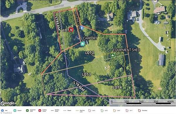 3 residential building lots nestled on 4.2 picturesque acres, offering a blend of privacy, convenience, and natural beauty. The majority of the property features a gently sloping grass field, encircled on all sides by mature hardwood trees--perfect for those seeking a peaceful homesite with room to roam. Each lot enjoys access to Yadkinville Rd, a small stream, and public water and public sewer (water at the road; sewer line on each lot), ensuring easy utility connections. Families will appreciate assignment to Vienna Elementary, Lewisville Middle, and Reagan High. Low prop. taxes at 0.612%, and no deed restrictions provide flexibility for your plans. A carport, an equipment shed, and a working well come with the property. Prime location-you're not far from shopping, schools, parks, or city amenities. This is an exceptional opportunity: three build-ready lots ready for your vision. Adjoining 2 bdrm home for sale for $190,000. Visit listing agent's website for more details and video tour