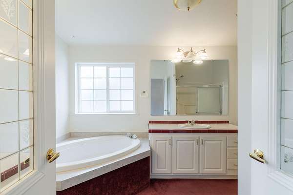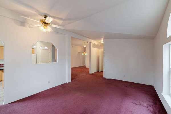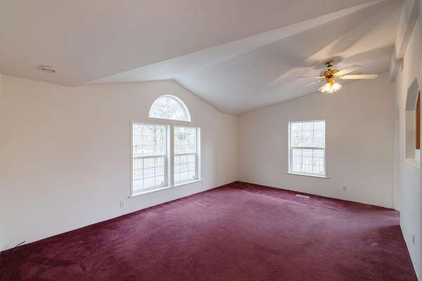 - Ceiling Fan(s), Double Vanity, Fiberglass Stall Shower, Pantry, Primary Downstairs, Shower/Tub Combo, Soaking Tub, Vaulted Ceiling(s), Walk-In Closet(s)
