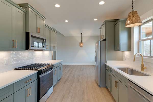 - Dishwasher, Electric Oven, Gas Range, Microwave, Refrigerator, Stainless Steel Appliance(s)