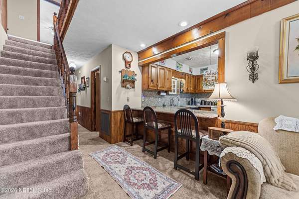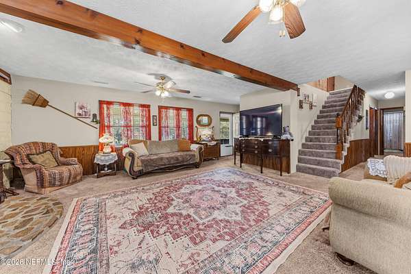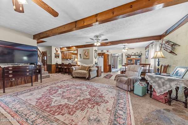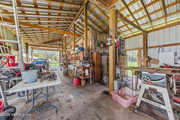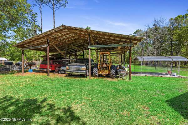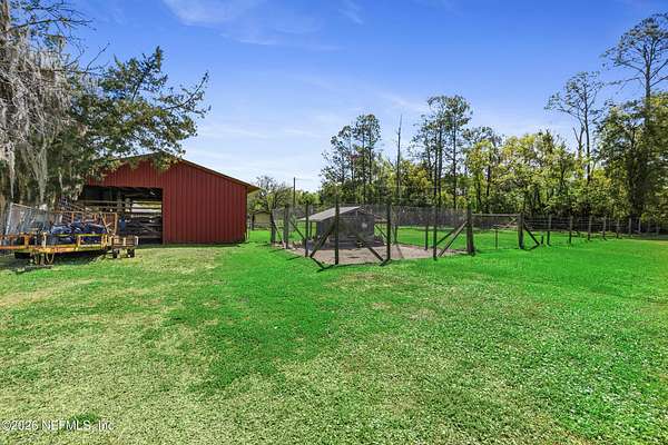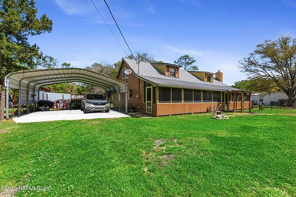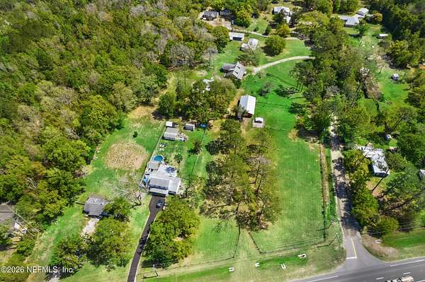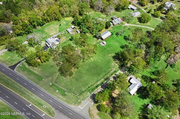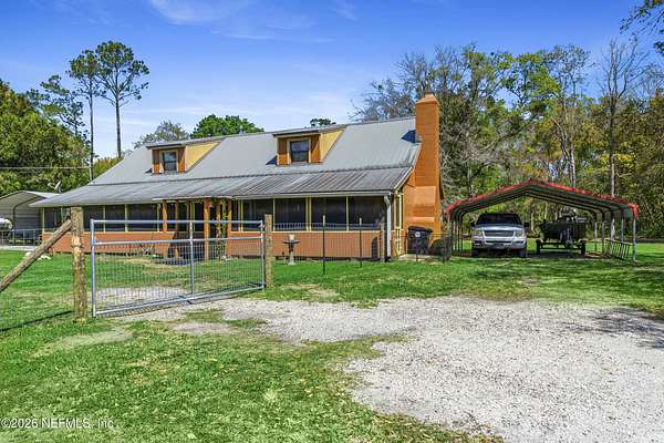Here it is! That one property you've been dreaming about. Chickens, cattle, and definitely the veggie garden, can all be a reality here. Most of the property is cleared and beautiful. The barn/workshop was rebuilt about 5 years ago and has a convenient half bath. There's also a large pole barn handy for storing heavy equipment. There's a chicken coop, a fishing pond, a large dog kennel and an ample amount of space to put your dreams to fruition. The house has a front porch that extends the length of the home. Inside you will find the primary bed/bath, 2 other bedrooms and a guest bath/laundry downstairs while the entire 2nd floor is a large bedroom and full bath. There is a door in the upstairs bedroom that was supposed to lead to a balcony, but the owners didn't get around to building it. There's 2 HVAC units - ages 2017 & 2020. Water heater is 2023.Metal roof 2009. The wood burning fireplace was crafted by stones found on the property which gives it a sweet history. What is also sweet - St. John's Water Mngt owns over 600 acres of wooded land behind there so no threat of additional homes being built. The house is on the corner of US-17 and Kersey Rd. There are 2 driveways to this home and one of them does not have a gate. Please use the driveway on US-17.