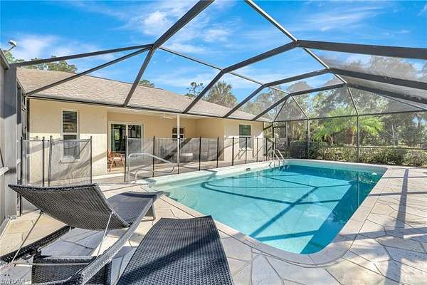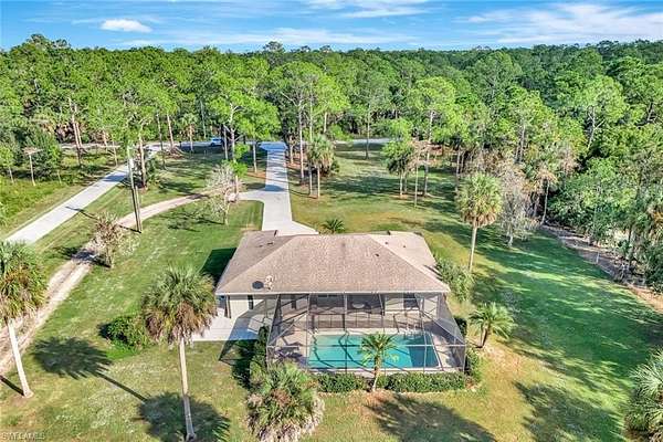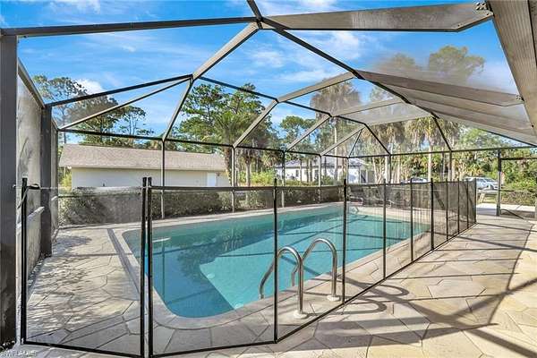 Welcome to your private retreat in the desirable Golden Gate Estates community! This beautiful 3-bedroom, 2-bath home sits on a spacious 2.5-acre lot surrounded by serene natural landscaping - the perfect blend of comfort and tranquility. Step inside to find an inviting open living space ideal for relaxing or entertaining. The heart of the home flows effortlessly to the outdoor screened lanai, where a sparkling pool overlooks the peaceful beauty of your expansive property. Whether you're enjoying a morning coffee, hosting gatherings, or unwinding after a long day, this outdoor oasis offers year-round enjoyment. With plenty of room for gardening, outdoor activities, or future expansion, this property provides endless possibilities. The 960+ Sq Ft structure behind the home offers a versatile option to store multiple vehicles, boat or other toys. Otherwise, it could offer that grand workspace you've always wanted. Located in the rear of the property is a 180 amp hookup service for RV or other uses. New owners will also enjoy and appreciate the Air conditioned 2 car garage. We invite you to come experience the quiet charm of estate living, while still being close to Naples' pristine beaches, parks, shopping, dining, and top-rated schools!