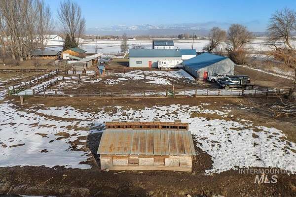 Check out the virtual tour for a great video walk-thru before making the trip. This exceptional property encompasses two distinct parcels. The main residence rests on a 2-acre lot and features a substantial shop, several outbuildings, and corrals. The second parcel is a 4.7-acre pasture with independent access from Bridge Street, presenting an ideal opportunity for a buildable lot. The home has been maintained with modern updates, showcasing original hardwood floors, two fireplaces, ample storage, a formal dining area, two living rooms, and a spacious covered deck. Additional features include newer hot water heaters and full ductwork, offering the potential for central air conditioning. The second living room can be easily converted into a main-floor master suite. Outdoor amenities are abundant and include fencing, automatic sprinklers, a large garden area, a 26x60 lean-to, and a 30x60 shop. The shop is divided into two 30x30 rooms, both equipped with 220 outlets. One side is fully insulated and includes office space and plumbing for a full bathroom. The property boasts excellent views of Cuddy Mountain and is conveniently located near schools and the town center. Assumable VA loan at 3.5%