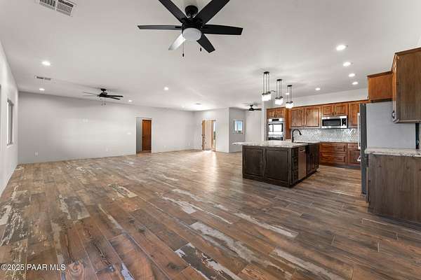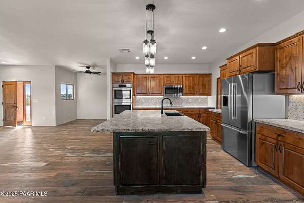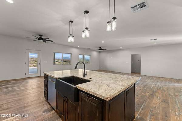 Welcome to Your Dream Santa Fe Style Home in Wickenburg, Arizona's Black Mountain Ranches! Enjoy the luxury of space on your vast 4.7-acre lot! With unobstructed views of the open desert and majestic mountains, this residence is a true oasis of tranquility and beauty. Step into luxury as you enter this custom Rubash home, where every detail has been meticulously crafted to perfection. The spacious and open floor plan boasts a plethora of upgrades, promising a lifestyle of utmost comfort and elegance. Throughout the home, you'll find wood-style tile floors that exude warmth and character. These floors not only add to the aesthetic appeal but also ensure easy maintenance, combining style with practicality.