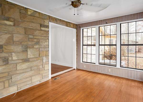 Rare opportunity to own a charming and cozy ranch-style home on 9.3+/- acres, conveniently located just minutes from Cox Creek Blvd and Cloverdale Road. This spacious 3-bedroom, 2-full-bath home offers 2,184 square feet of comfortable living with the perfect blend of original character and modern updates. Recent improvements include a completely renovated second full bathroom and laundry room--gutted to the studs--along with fresh paint throughout, new light fixtures and recessed lighting. The primary bedroom features a beautiful clawfoot tub, adding a touch of timeless charm. Hardwood floors flow through much of the home, and abundant natural light fills every space. Enjoy peaceful mornings and entertaining in the serene sunroom just off the dining room, or relax on the screened-in rear deck equipped with electricity. Outside, the wooded lot provides exceptional privacy, along with a workshop with electricity--perfect for storage, tools, or hobbies.