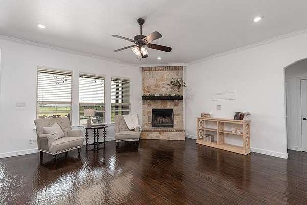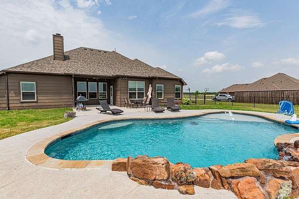 ZERO DOWN PAYMENT ELIGIBLE for USDA loans! Close to town with wide open spaces... This beautiful four bedroom, two bath home sits on top of Caddo Mills. Lending spectacular views day and night, of surrounding pastures and breathtaking sunrises and sunsets. Fresh landscaping and a newly stained front door greet you. You're welcomed inside by updated paint throughout the entire home and like-new hand scraped wood floors. Open concept living, kitchen and dining are framed by a cozy corner, stone fireplace. Big windows let in the light and allow for the view to be taken in. A large kitchen island with seating, a walk in pantry and large laundry room off to the side. Down one hall there are 3 bedrooms with a full bathroom, perfect for family or guests. Past the dining room on the opposite side you'll find the owners suite. Enjoy privacy and pool views along with your en suite bathroom and spacious walk in closet. Outside is the spot for entertaining. The high elevation of the home allows you views of the town and sunset! Enjoy your inground pool, rock wall water feature and space toe entertain or soak up the privacy. Don't forget that long driveway for lots of parking & newly installed gutters & roof. This home offers an organic yet updated feel and a place to relax and unwind. Bring all offers! All information is deemed correct and accurate. Buyer is responsible for verifying all information Property is also listed for lease.