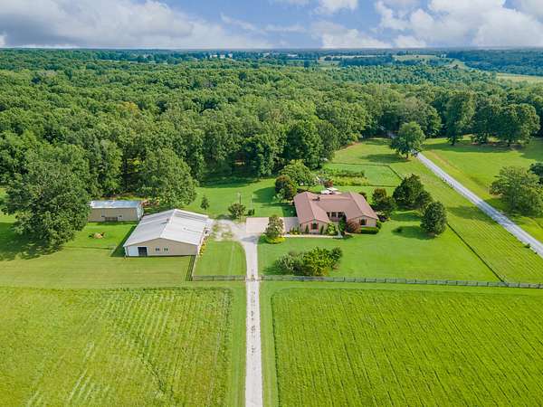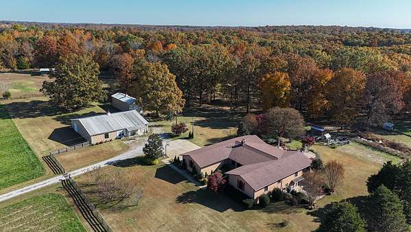 Searching for that Perfect HOMESTEAD or HOBBY FARM w/IN-LAW SUITE & Separate AirBNB…Look No Further!! This 4bdrm/4bath (4622sqft) BRICK Ranch sits on 39 ACRES of Fenced PASTURE w/Stocked POND & Mature Trees. The MULTI GENERATIONAL Options that this Property Offers is Amazing! Imagine a Home where your aging Parents & your Growing Family had Multiple Choices and Their Own Space! FEATURES & UPDATES…~HRDWD, LVP & TILE Flooring ~Large Open Living Rm w/VAULTED Ceiling & STONE FIREPLACE (wood) ~Kitchen Reno (2017)…Cabinets, Counters, Floors, Island, Banquette Seating ~Attached In-Law Suite Reno (2016) ~Primary Suite & Bath Reno (2020) ~Inviting Sunroom w/big Custom Windows ~Basement Reno (2021)…Bdrm, Office & Full Bath plus backup Wood Burning Furnace ~3-Car Attached Garage ~New Windows (2020) ~Water Heater (2025) ~HVAC (2011 & 2024) ~2bdrm/1.5bath Barndo AirBNB Added (2018) which is a Finished Portion of the Barn that also offers a 58x18 Workshop w/built-in Workbench and a Variable Speed Ventilation System. Plus a large extended overhang w/5 individual stalls for Livestock or Storage ~Home & Barn Septic Pumped (2024) ~51x16x14 Insulated RV Barn great for working on Equipment & Storage ~WELL WATER, but CITY WATER is run to the Home too (Well head includes a manual hand pump) ~Large Whole Property Natural Gas GENERATOR ~GREENBELT TAX PROGRAM ~Walkout Basement w/Side Patio & Hot Tub Hookup ~Raised Back Patio w/Access to Main Living Space & In-Law Suite ~Lots of Beautiful Landscaping including a 3500 gal KOI Pond with 2 Waterfalls & built-in filtration ~Fire Pit Area ~Large Chicken Coop w/Tack Rm, Electricity & Automatic Door ~Fruit Trees ~Split Rail Fencing in Front w/Cross Fencing & Multiple Access Gates ~Solar Powered Gates in Driveway ~Trails through the back 20 acres for Recreation or Hunting. *DON’T FORGET TO CLICK ON THE ATTACHED VIRTUAL TOUR BELOW….IT’S AMAZING*