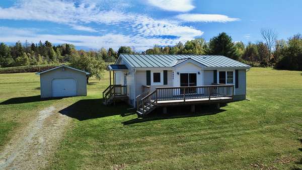Welcome to this charming home situated on 12.4 beautiful acres in the town of Coventry. This property offers a rare combination of multi-use potential, a prime location, and no zoning restrictions. Step inside to this cozy home beginning with a thoughtfully designed kitchen that flows effortlessly into the dining room. Just off the dining area, you'll find an attached deck (22' x 9'2") overlooking the surrounding natural landscape--an ideal space for relaxing with your morning coffee, hosting and more. The spacious living room is followed by a generous primary bedroom (13'10" x 12'2") with dual closets, a second bedroom, and an inviting modern bathroom to complete the main level. Downstairs, the ample basement offers incredible potential--perfect for a family room, gym, office, or additional living space to suit your needs. Outdoors, a detached 1-bay garage (21'4" x 15'4") complements the larger multi-bay garage (31'11" x 28') offering abundant space for multiple vehicles, a workshop, or even equipment storage. Located on a paved road with direct access to VAST trails, this property is a haven for outdoor enthusiasts. Enjoy snowmobiling in the winter, exploring nature year-round, or simply appreciating the beauty of your surroundings. This property is minutes from downtown, local restaurants, I-91, and other amenities creating optimizing convenience! Opportunities like this don't come along often.