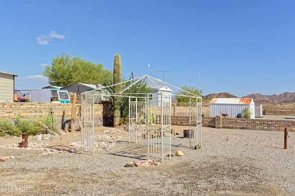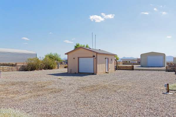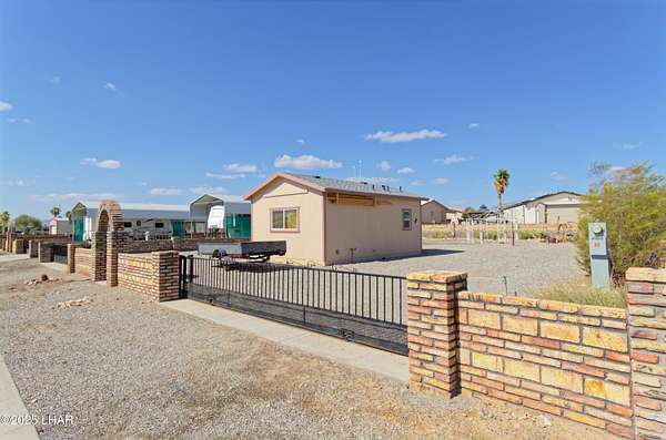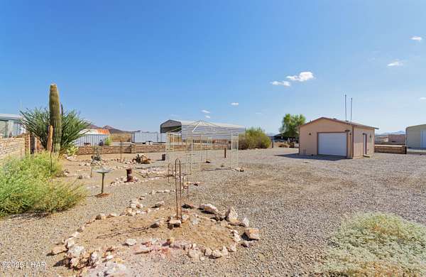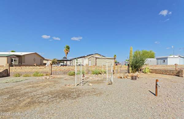 Your Desert Oasis Awaits in Quartzsite's Rainbow Acres! Discover the ultimate seasonal escape with this fantastic 1/4 acre lot in Quartzsite, AZ. Located in the popular Rainbow Acres subdivision, this property is perfectly set up for RV living and ready for you to enjoy. The lot is a true turnkey solution, enclosed by a brick fence with convenient gates for RV access. The highlight of the property is the 24' x 16' (384 sq ft) utility garage, which provides essential space for your vehicles, equipment, or guests. Inside, you'll find a full bathroom and a small kitchen utility area, offering all the comforts of home. For overnight stays, the utility building is equipped with a clever, space-saving Murphy bed, allowing you to easily convert the area into a comfortable sleeping space. Designed specifically for the RV enthusiast, this lot is equipped with two 50-amp full RV hookups and an additional 30-amp hookup, ensuring you have all the power you need. This is the ideal base for snowbirds and desert adventurers. With a perfect blend of convenience and seclusion, this property offers a rare opportunity to own a prepped and ready lot in a sought-after area. Available as you see it.