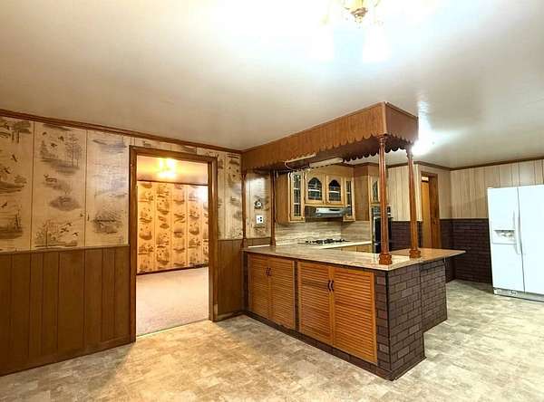 Est $965/moThis 4 acre yard is so beautiful and peaceful. The warmth of this home hugs you when you enter. From the special sink that washed many dishes with love to the beautiful magnolia in the yard, it's not a house, but a home. With some new flooring, paint, and love, someone could have their forever home here. This home has three bedrooms, a full basement, a detached garage, a fenced-in yard, and a new furnace.