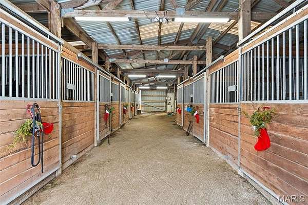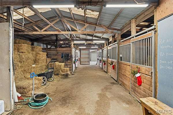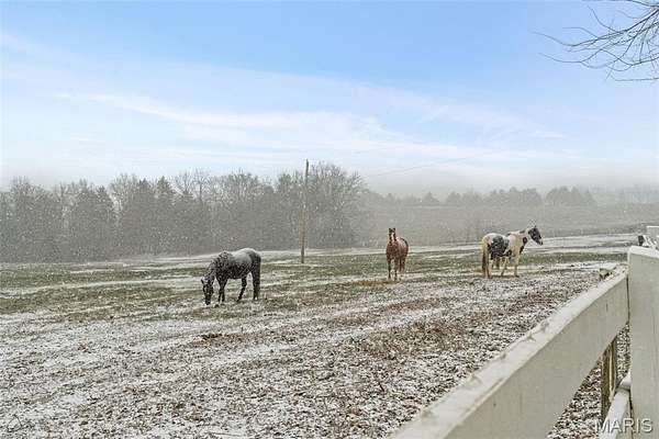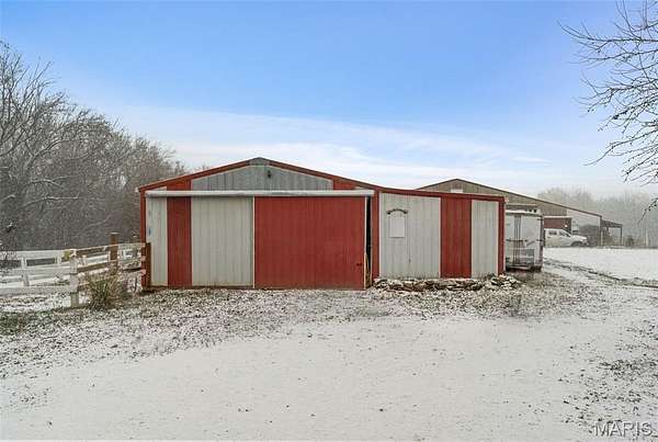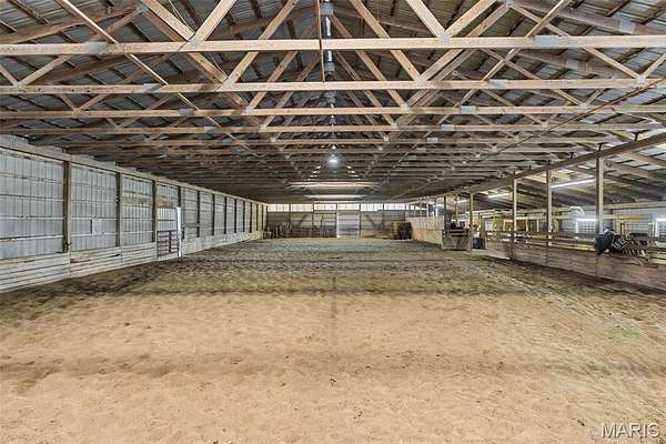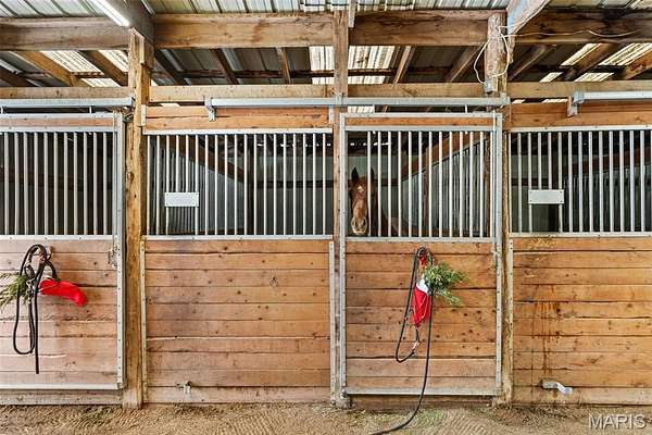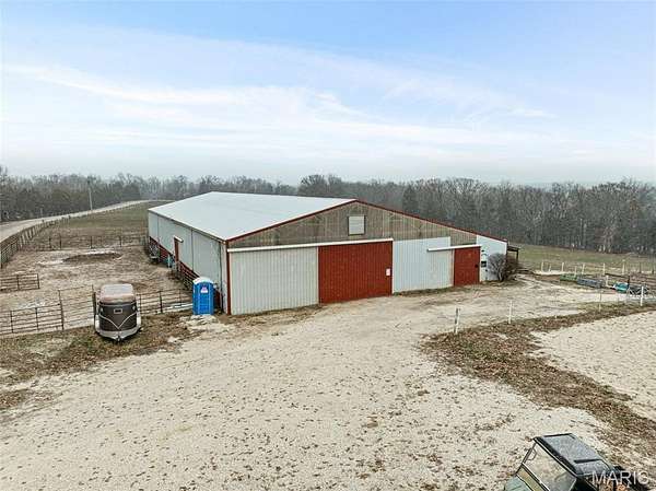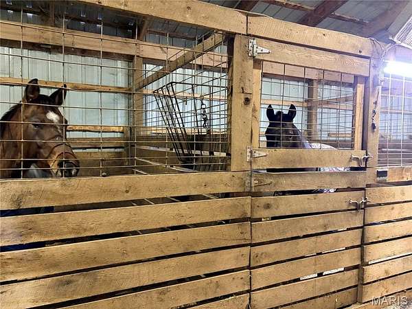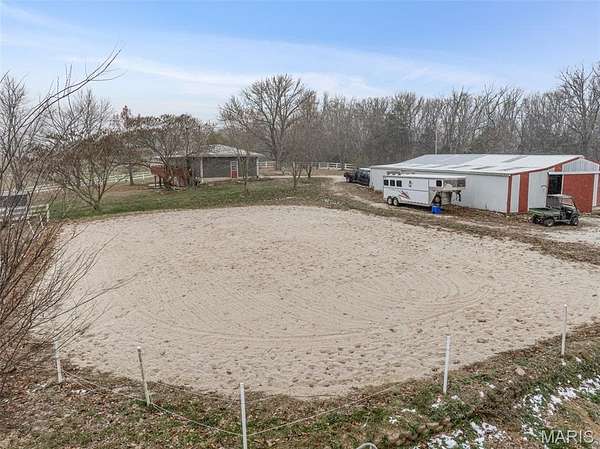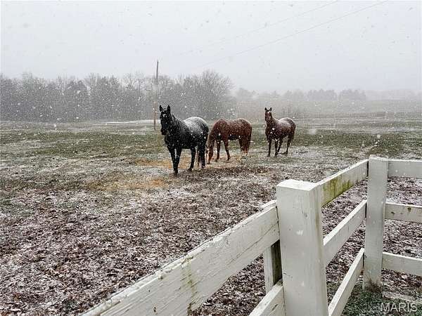Offered for Sale - Kiel Lyon Equestrian Center, located in the R-II school district, minutes West of Washington, offering 19 serene "horse friendly" fenced acres! This equestrian center has operated for over 25 years as a successful boarding, training, and breeding facility, where you will be impressed when viewing the large 136' x 80' horse barn w/7 stalls, tack room, 'run in', and a 60' x 136' indoor riding arena; a second 60' x 36' horse barn with 8 stalls, tack room, hay storage, and wash stall; as well as a 100' x 120' outdoor riding arena. The ease of accessibility, a separate stallion stall and run, and the friendly atmosphere, are only a couple of the reasons for their success! Currently there are 15 horses that are leasing through May 1, 2026, for $175 a head/self-care. There have been as many as 25 head on the property. The Western style ranch home was built in 1977 and has been lovingly improved and remodeled along the way! Hickory cabinets in the kitchen, tile back splash, and vintage cast iron sink. The main floor bath is awash in color in the artist tile surrounding the vintage claw foot tub! Additional updates include newer windows, gutters, water heater, 2 electric services one in house and one in barn, siding, standing seem metal roof, interior trim, and flooring. This farm is very special, and one you will truly fall in love with! This farm is across the street from 117 acres owned by the same family, and is also listed for sale under MLS #25073530, should buyer wish to acquire more acreage