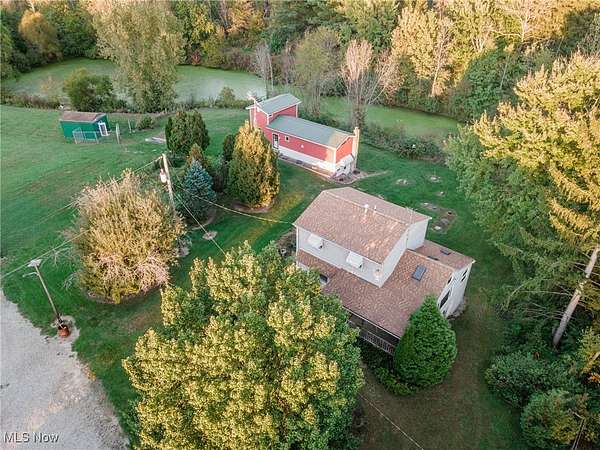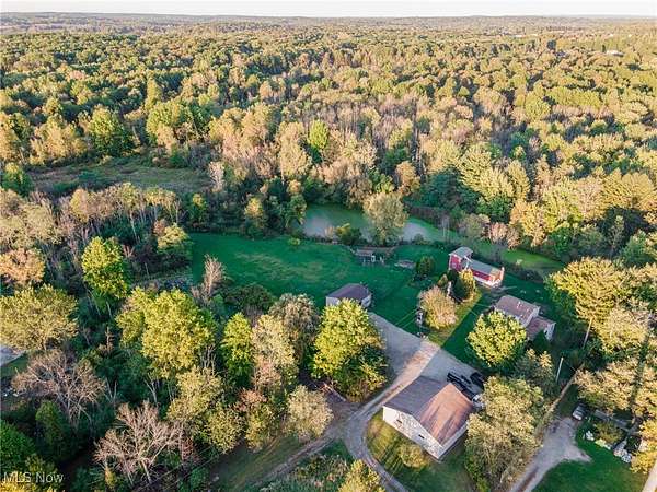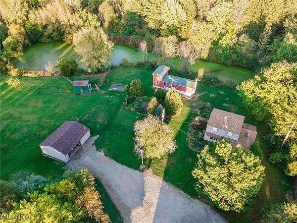 Nestled on 12.3 scenic acres, this rare property offers the perfect blend of residential comfort, business potential, and unmatched versatility. The front two acres are commercially zoned, opening the door to endless opportunities for a home-based business or future development while still enjoying the privacy of a country setting. The two-bedroom, one-and-a-half-bath home showcases quality craftsmanship throughout, featuring Anderson windows, a cathedral ceiling with exposed beams, and skylights that flood the kitchen with natural light. The thoughtfully designed kitchen is equipped with premium Jenn-Air appliances, while the spacious upstairs primary suite offers a soaking tub, separate shower, and built-in vanity. The lower level provides additional storage, the utility room including a Kinetico water softener, the laundry area, & the second bedroom plumbing for a potential full bathroom. Outdoors, the property is designed to impress with two serene ponds and three exceptional outbuildings. A 32x25 garage built in 2007 and a heated 40x40 garage built in 2008 with 9-foot ceilings provide ample space for vehicles, equipment, or hobbies. A third outbuilding, renovated and waterproofed in 2009, features a generous first level for storage and a finished upper level complete with a private theater room, projector, and screen. Adding to its uniqueness, the property includes a gas well offering free gas with the convenience of switching to city gas at the flip of a switch, and a city water line is available at the street for future hookup if desired. Whether you envision a private retreat, a business venture, or a combination of both, this remarkable property delivers privacy, functionality, and flexibility all in one. Schedule your private showing today and experience the possibilities for yourself
