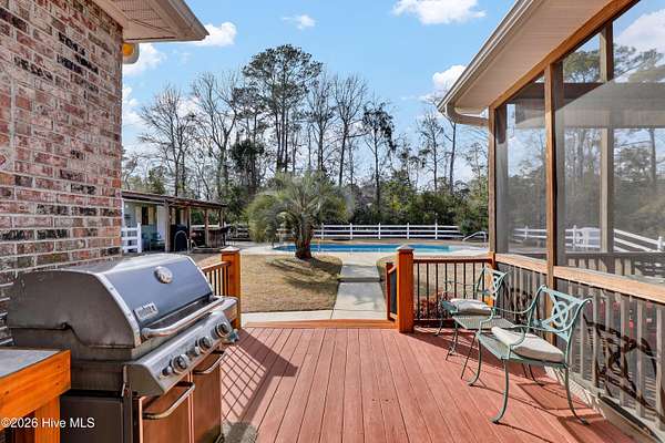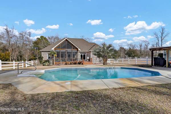 Nestled on 1.75 acres of private, picturesque grounds, this exceptional estate offers the perfect balance of refined living and everyday comfort. Designed with both flexibility and function in mind, the home features 3 spacious bedrooms and 3.5 baths, along with a versatile bonus room that can easily serve as a fourth bedroom, media room, playroom, or private retreat. An additional flex space is ideal for a home gym, art studio, or hobby room. A one-owner house the seller still has the floor plans to pass to the buyer. A three-car garage and extra-wide driveway provide abundant space for vehicles, storage, and guests. Inside, the thoughtfully designed floor plan is perfect for both relaxed living and elegant entertainment. The inviting family room flows seamlessly into a formal dining area and an impressive chef's kitchen complete with granite countertops, extensive cabinetry, a large pantry, and a powerful six-burner gas stove -- delivering both performance and style. Step outside to your own resort-style oasis. Enjoy peaceful mornings on the deck or around the pool , unwind in the expansive screened porch, or spend warm afternoons by the sparkling saltwater pool. A detached workshop offers additional space for projects and storage, while the covered outdoor cooking area with a sink installed creates the ultimate setup for grilling and entertaining year-round. Just add your own grill or smoker. Residents of Olde Point / Olde Point Estates Subdivision have the opportunity to access the Harbor Village Yacht Club boat ramp for a Fee through the yacht club, making coastal adventures easily accessible. Optional memberships are also available at Olde Point Country Club -- contact the Pro Shop for details. Just 15 minutes north, the pristine beaches of Topsail Island await, offering sun, sand, and endless coastal enjoyment. This property delivers space, privacy, and lifestyle -- all in one remarkable setting.