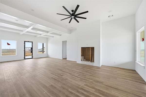 Welcome to your private retreat in the sought-after Willow Moon Ranch community of Crawford, Texas. This meticulously designed modern farmhouse perfectly combines contemporary luxury with timeless country charm on a sprawling 5-acre estate. Step inside to soaring ceilings throughout that will create an impressive sense of space and light. The grand entry will make an immediate statement with elegant bead board detailing, setting the tone for the craftsmanship found throughout. This home features 4 spacious bedrooms and 3.5 spa inspired bathrooms, complemented by a versatile office or flex space ideal for remote work or a hobby room. Premium LVP flooring throughout offers both beauty and durability for your active lifestyle. The heart of the home features custom cabinetry and elegant quartz countertops that add a bespoke touch to every space, while the cozy gas fireplace will create the perfect ambiance for relaxing evenings. The modern kitchen will be equipped with sleek black stainless steel appliances including a professional-grade gas range. Embrace the Central Texas country lifestyle with a generous wrap-around porch, perfect for morning coffee or evening gatherings while enjoying breathtaking sunrises and sunsets. The outdoor entertainment area features a built-in grill, making this home ideal for hosting family and friends year-round. The expansive 3-car garage provides ample space for vehicles, toys, and storage. Pet owners will love the dedicated dog shower in the laundry room--a thoughtful feature that makes cleanup after outdoor adventures effortless and keeps the rest of your home pristine. Enjoy the peace and privacy of country living with endless possibilities!