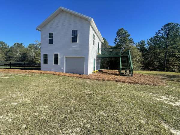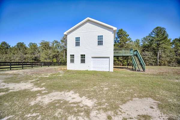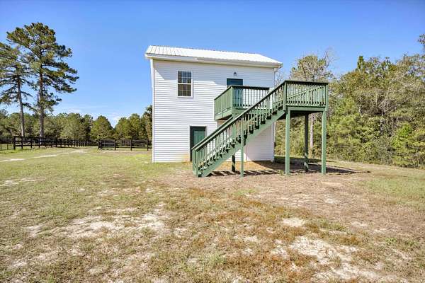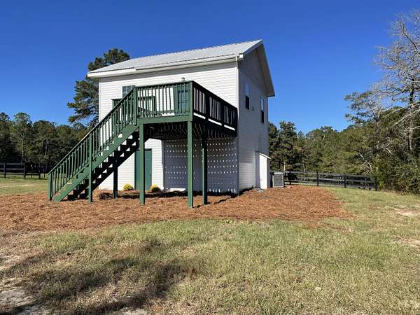 Welcome to this beautifully reimagined equestrian property, perfectly positioned in the heart of Aiken's renowned horse country. Thoughtfully updated from the ground up, this turn-key estate offers refined living for both you and your horses. Four newly fenced paddocks, enclosed with classic three-board fencing, provide exceptional turnout and safety. The front jump/dressage field and an adjacent paddock are fully irrigated and freshly seeded with lush winter rye grass, ensuring year-round training and grazing opportunities. Every paddock connects with 12-foot gates for effortless access and movement throughout the property. Equestrian amenities include a 72' x 16' shed-row barn with water, electricity, concrete pad easily converted to 3 stalls, wash stall, storage & tack room. The one-and-a-half-story residence balances charm and functionality, offering two distinct living spaces. The lower level features a garage with a laundry area, living area, full bathroom, storage closet-a perfect setup for a tack room and groom's quarters. Upstairs, via an exterior staircase, discover a newly completed living space with a brand-new kitchen, featuring elegant marble counters, abundant cabinetry, and a peninsula. The greatroom is bathed in natural light, while a full bathroom and a spacious bedroom with generous closet space create a comfortable and stylish retreat. There are expansive paddock views from every window! Enjoy your morning coffee or an evening cocktail from the large upper deck! You have full view of the property from this vantage point. Every detail of the renovation has been meticulously executed: new well pump, HVAC, wiring, plumbing, insulation, drywall, hardwood floors, kitchen, bathrooms, and equestrian infrastructure-including fencing, irrigation, and driveway grading with double entrance gates. This quintessential Aiken hunt box comes fully furnished with carefully curated antiques and artwork, offering timeless character and move-in ease. Simply bring your clothes and your horses-the rest has been beautifully prepared for you.