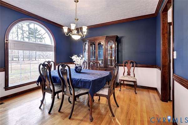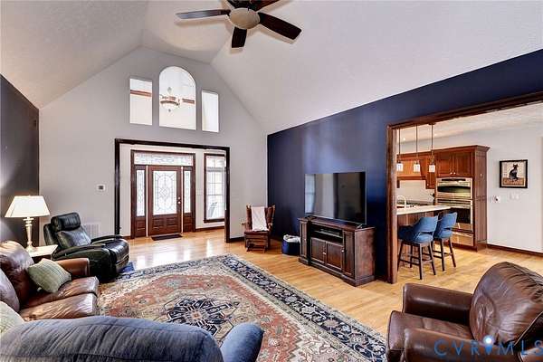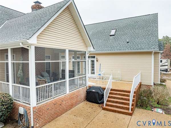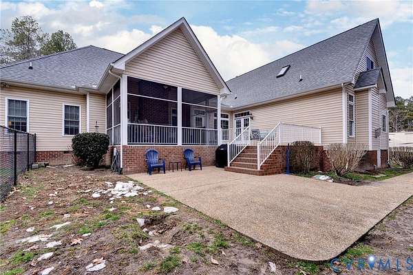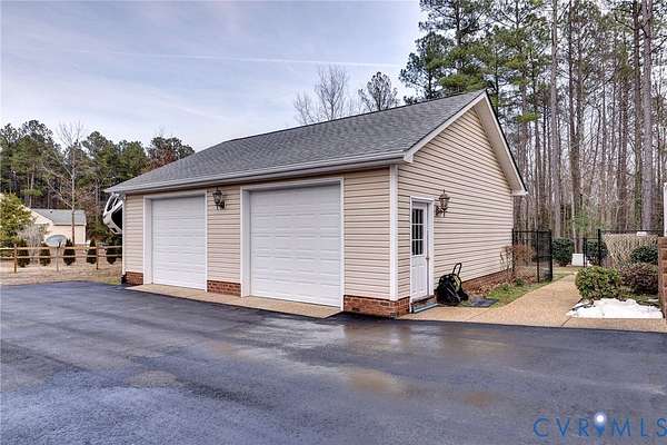 Custom-built transitional rancher situated on a private, park-like 5-acre lot in King William County. This thoughtfully designed home offers over 3700 square feet of living space with 10-foot ceilings, crown molding, hardwood floors, and one gas fireplace and one brick fireplace. The spacious kitchen features cherry cabinetry, granite countertops, built-in oven, and an eat-in area-ideal for everyday living and entertaining. The primary suite is located on the main level and includes a large walk-in closet, fireplace, and spa-inspired bath with jetted tub, separate shower, double vanities, and tile finishes. Additional bedrooms, closets/storage, and flexible living spaces provide room for guests, home office, or recreation. Enjoy outdoor living with a screened porch, rear patio, mature trees, and a private setting. Additional features include a whole-house generator, encapsulated crawlspace with dehumidifier, HVAC systems (2024), transferable warranty, irrigation system, fiber-optic internet, and an attached 2-car garage plus an additional oversized detached 2-car garage. No HOA. A rare opportunity for space, privacy, and quality construction-just minutes from Route 360. Septic system is designed for a 3-bedroom home with capacity for up to 6 primary occupants.