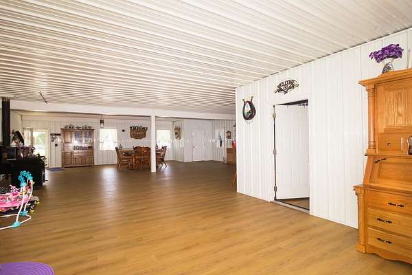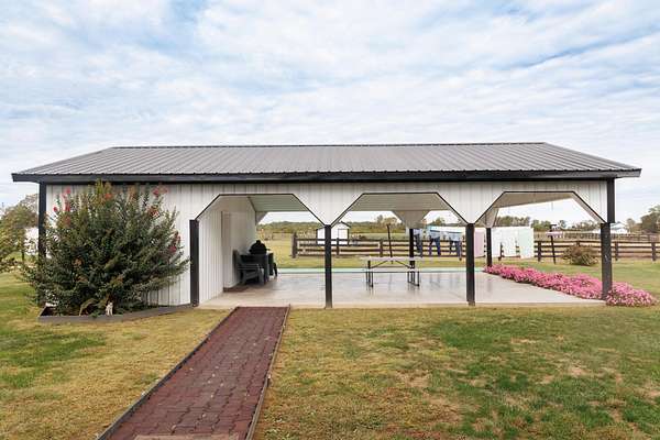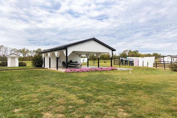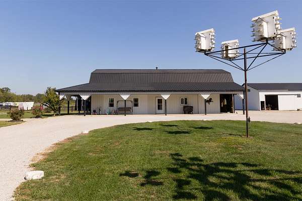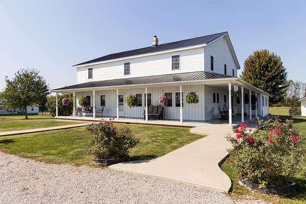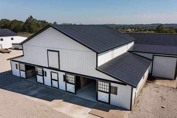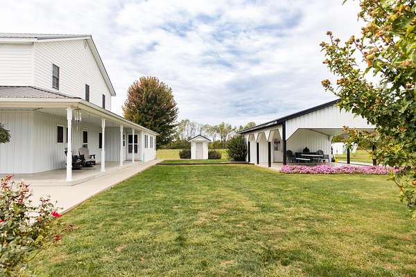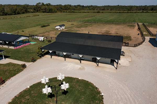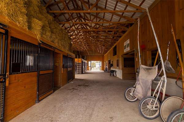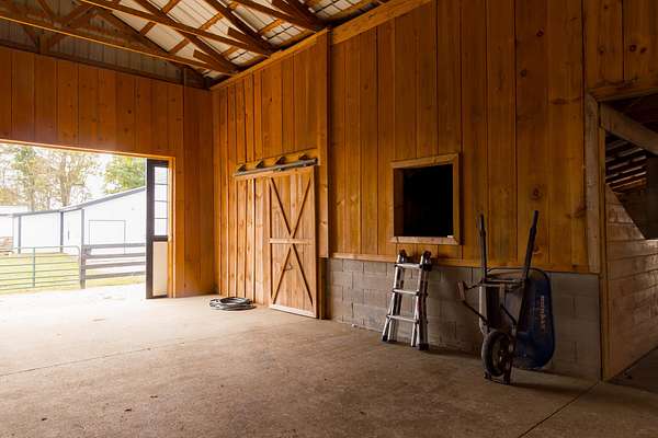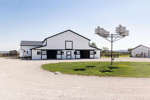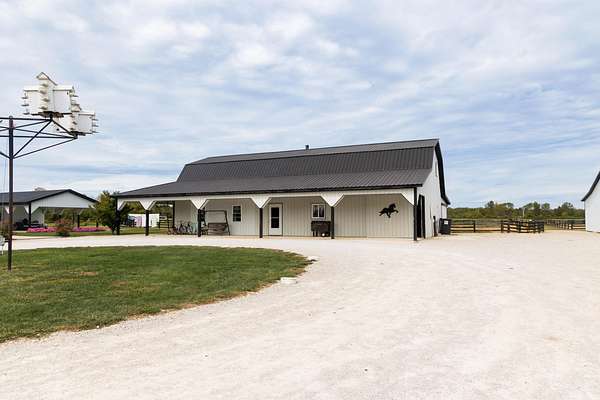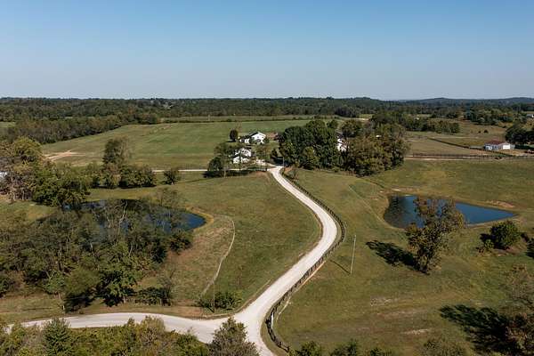 Welcome to a rare and remarkable property that combines country luxury, equestrian excellence, and business potential all in one stunning package. Situated on 41.35 fully fenced acres, this beautiful horse farm offers everything you need for refined country living, serious horse training, or a multi-family living opportunity. The land features seven paddocks/lots and a large field with a training track around the perimeter, along with the ability to grow your own hay, a self-sustaining setup designed for equine enthusiasts. A spring-fed pond stocked with largemouth bass adds to the charm and functionality of this exceptional estate. The home is a classic two-story farmhouse boasting over 4,700 square feet of finished living space plus a poured concrete partial basement. Wraparound porches frame breathtaking views of rolling hills, perfect for taking in both sunrise and sunset. Additional property highlights include a barndominium with guest quarters, horse stables, a multi-purpose barn, a dedicated business building, and a pavilion designed for entertaining, all fully integrated for either private use or a turnkey business operation. With its panoramic vistas, premium facilities, and unmatched versatility, this property is truly a dream come true for horse lovers, entrepreneurs, and families alike. Whether you're looking to run a horse or agricultural business, create a private retreat, or live off the grid, this farm delivers limitless opportunity. Experience a lifestyle where beauty, productivity, and opportunity meet. This is more than a farm, it's a legacy waiting to be continued.