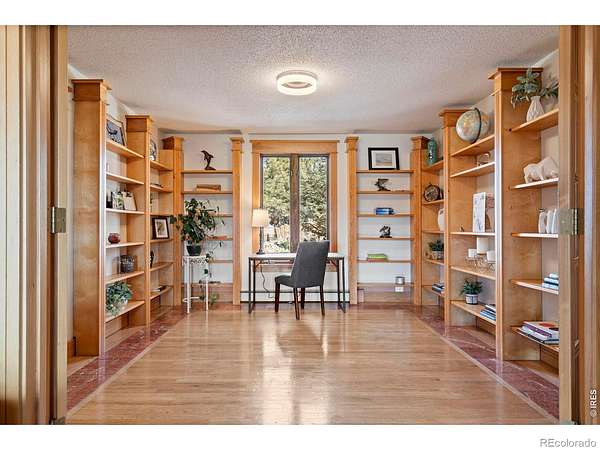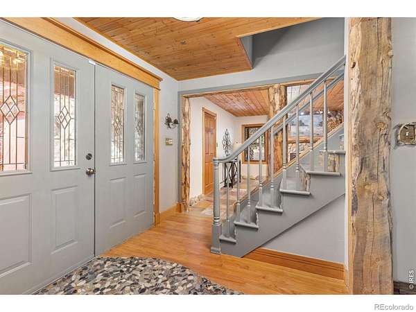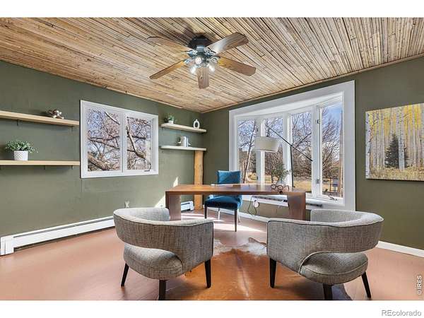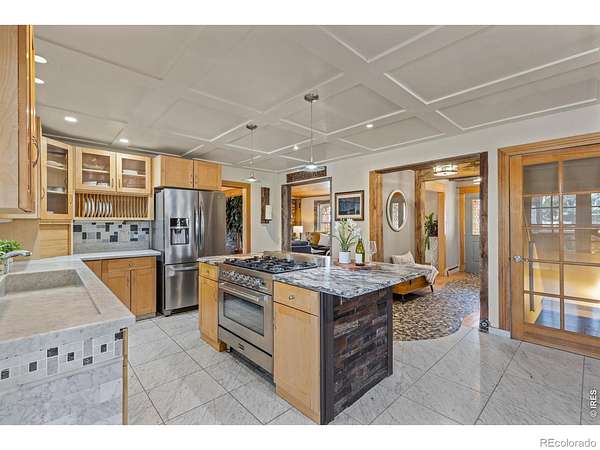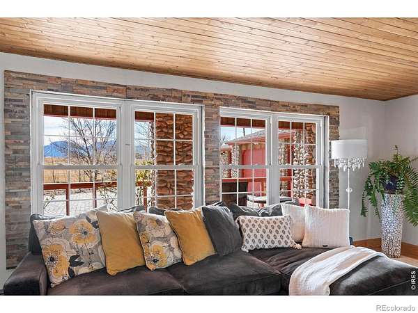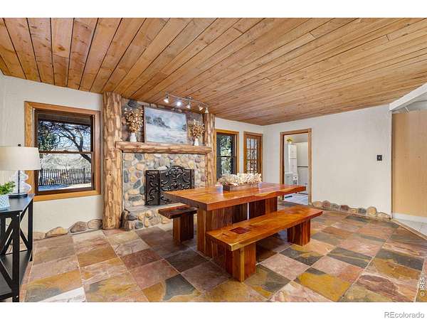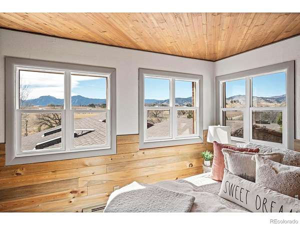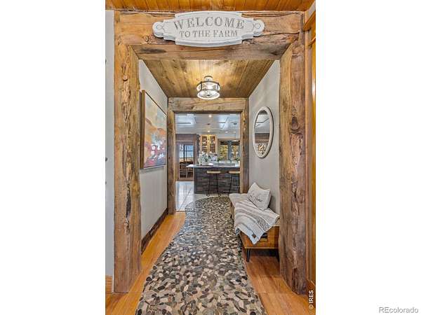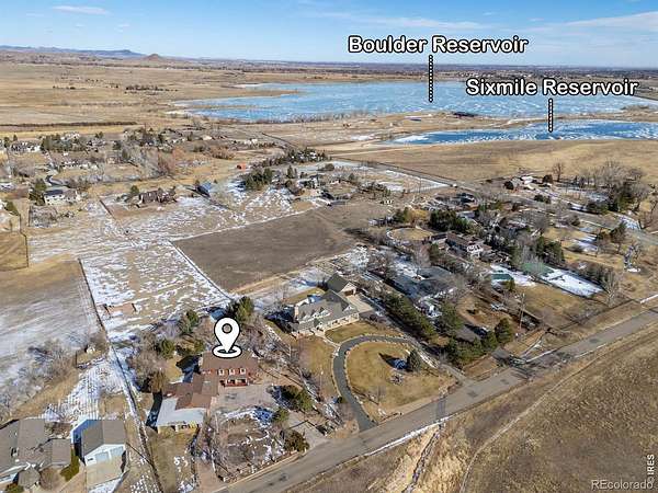 Wake up to unobstructed views of the Flatirons and Colorado's iconic foothills from nearly every window of this extraordinary 5-bedroom estate. Set on 2 acres across from protected open space, this rare property offers breathtaking scenery, exceptional privacy, and an unbeatable location just minutes from downtown Boulder and within walking distance of the Boulder Reservoir. A circular cobblestone driveway welcomes you to a home that feels warm and inviting from the moment you step inside. Thoughtfully updated over the years, every space reflects care, character, and craftsmanship. The custom kitchen features marble sourced from Italy and Vermont, marble flooring, and a statement island framed in rustic decommissioned ship wood. The show-stopping entry and foyer showcase river rock tile and reclaimed barn wood beams, setting the tone for the home's natural elegance. The cozy living room is lined with windows framing stunning mountain sunsets. Additional highlights include a main-level office with built-ins, a dining room with a wood-burning fireplace framed in river rock and a log beam mantel, and a studio/workshop with a private entrance. The basement is ideal for entertaining, perfect for game nights or gatherings. Outdoors, the backyard is designed for enjoyment with mature landscaping, vibrant seasonal color, and a tranquil pond and water feature. The property is ready for horses, livestock, or chickens, with existing shelters, fencing, and heated water lines. This rare location offers the perfect balance of nature, privacy, and convenience-peaceful and tucked away, yet close to everything that defines Boulder living.
