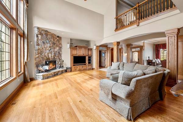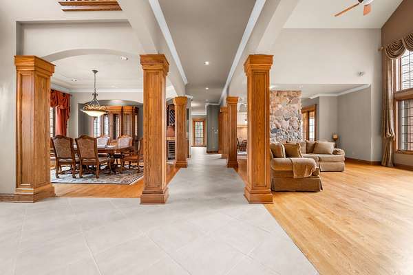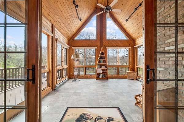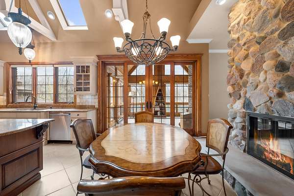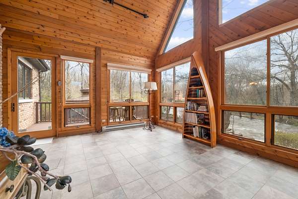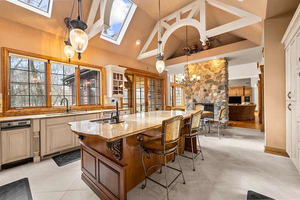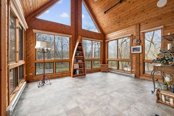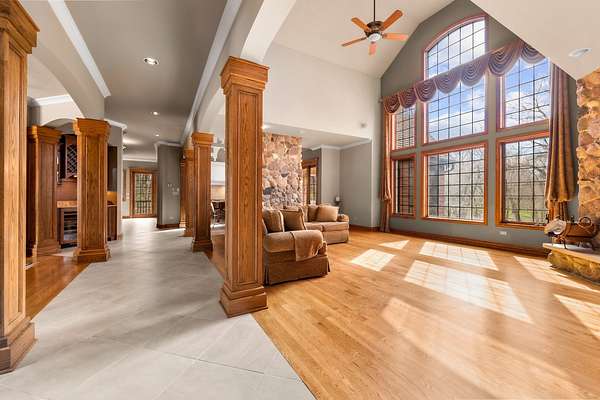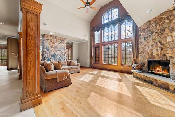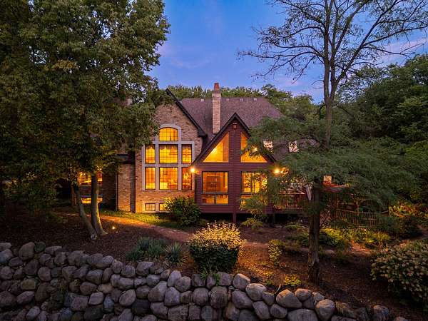 Imagine yourself meandering down a serpentine path bordered by majestic, mature trees, leading to your exclusive sanctuary. This exceptional custom home is nestled in secluded, wooded splendor, spanning around 89acres overlooking Aux Sable Creek. Its awe-inspiring traditional architecture, accented by enduring brickwork, emanates timeless allure. Every aspect of this extensively upgraded residence radiates personality, from the striking great room with a stone fireplace and expansive windows offering panoramic views, to the opulent master suite on the FIRST FLOOR boasting a spa-like glamour bath. The gourmet kitchen is a haven, featuring a soaring, beamed ceiling, artisanal custom cabinetry, and premium appliances. Host lavish gatherings in the formal dining room adorned with exquisite millwork. Generously sized bedrooms provide ample storage, while the loft area could effortlessly be transformed into a fourth bedroom. The vast lookout lower level offers abundant space for leisure, gaming, storage, fitness, and more. Roughly 25 acres of the property are leased to a farmer. This offering stands as one of the most exceptional and distinctive entries into the luxury real estate market. Indulge in the luxury of a PRIVATE CREEK! Aux Sable Creek is celebrated as one of the state's most pristine waterways, allowing for hunting and fishing on your private 89-acre expanse. Moreover, the creek connects to the Illinois River, ideal for boating and other recreational pursuits. And let's not overlook the opportunity for equestrian pursuits, with a barn featuring electric and concrete on-site.