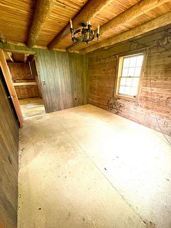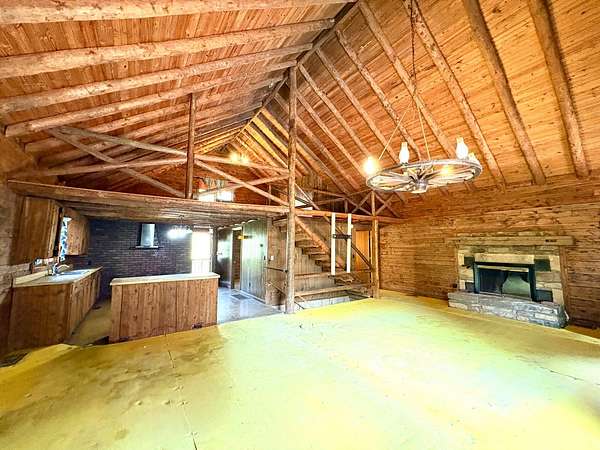 Est $974/moTucked away in a serene setting just minutes from town, this charming rustic cabin on 2.27 acres offers a canvas for transformation, featuring 2 bedrooms, including a convenient main-floor primary bedroom, and 1 full bathroom ripe for renovation. The upstairs loft or second bedroom adds flexibility, while the wood-burning fireplace, partial unfinished walkout basement, metal roof, and expansive wrap-around porch highlight the property's best features. With a detached two-car garage and utility shed, this home's scenic retreat and potential for revitalization make it an ideal project for those looking to put their own stamp on a property - schedule a showing to unlock its full potential.
