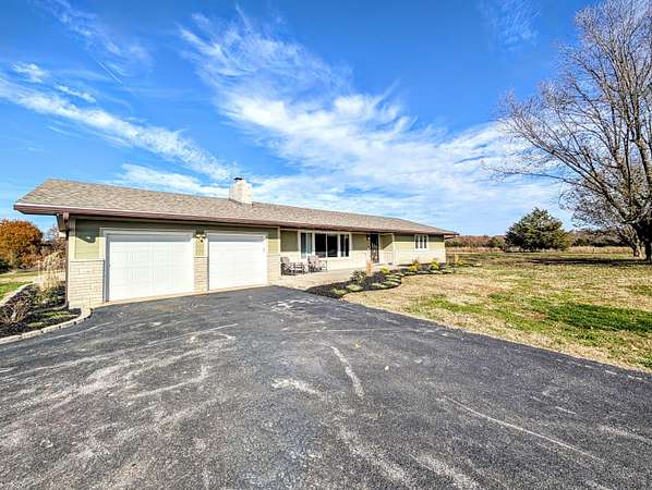 This extraordinary property has everything starting with the incredible location just across from Fellows Lake. That is right, you can walk to the hiking and biking trails, boating or fishing. The moment you pull into the paved drive, you will notice this home is a gem. Sitting on 5 acres, with exceptional landscaping, this open concept and smartly designed modern ranch has 4 bedrooms, including a nice, south facing primary suite, 2.5 baths, wood floors, custom kitchen cabinets and appliances, a fireplace and so much more. Step out back and you have plenty of privacy, room for building a shop or having a horse. Plus, not only do you have a storm shelter, but you will also have hours of enjoyment with your own in-ground swimming pool and fire-pit seating area. This amazing home has much to offer!