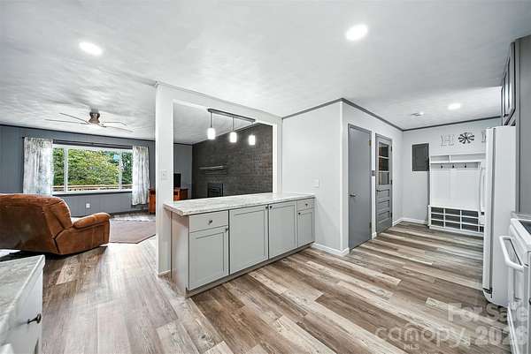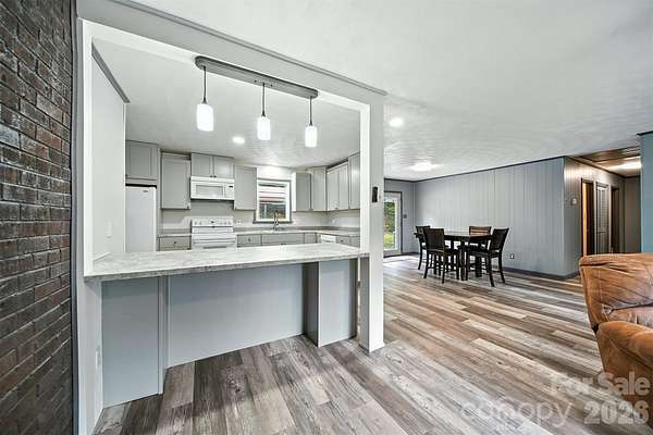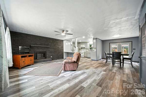 Beautifully renovated brick ranch on 7.13 acres +/- (recent survey on file)! Fresh paint throughout with new laminate and LVP flooring. Updated kitchen features new cabinetry and countertops, and all appliances convey. Bathrooms include new vanities, flooring, fixtures, and a custom tiled walk-in shower with glass door. New windows and doors throughout. Laundry hookups on both levels for added convenience. Finished lower level offers separate kitchenette area, storage room, half bath, laundry, and flex space. Attached 2-car garage plus detached 2-bay carport with concrete pad. Additional 2-bay detached garage in backyard with power, outlets, and lighting. Move-in ready with room to spread out.