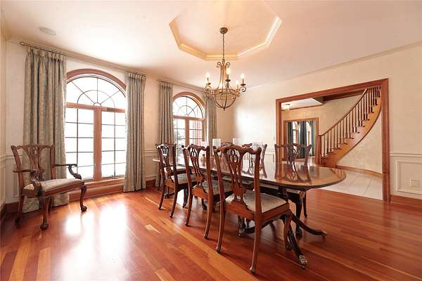 Est $7,626/moBeautiful Georgian Colonial brick mansion with over 3 acres on Wolf Road! 5 bedrooms, 5 bathrooms, multiple gas fireplaces and one wood burning. Second floor primary suite with walk in closet, sitting room with fireplace and balcony overlooking the property. 3 car attached garage and two more garages with 7 more spots located at the rear of lot.