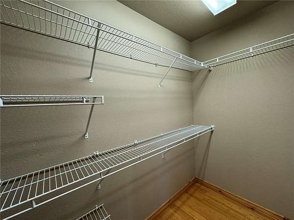 - Blinds, Cathedral Ceiling, Ceiling Fans, Pantry, Skylight, Smoke Detector, Walk-In Closets
