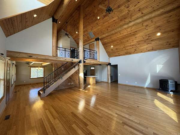 Discover your perfect White River Valley Sanctuary with this stunning 3 bedroom/3 bath log-style custom home sitting on a manicured, 2.36-ac/ml level lot in the majestic White River Valley. Just a stone's throw from the public boat launch, this property offers a seamless blend of rustic charm and modern luxury. Inside, be captivated by the open floor plan,well designed & maintained Kitchen,warm hardwood flooring,and vaulted ceilings that amplify the natural light and breathtaking views.Comfort is guaranteed year-round with a highly efficient,three-zone geothermal heating and cooling system,which also promises significant energy savings. Outdoor living is a dream with a large covered porch and an open deck, perfect for entertaining or relaxing while soaking up the views of the serene White River Valley. For the hobbyist, entrepreneur, or adventurer, the property includes a fantastic 30x40 metal shop building complete with RV electrical and water hookups, providing endless possibilities.