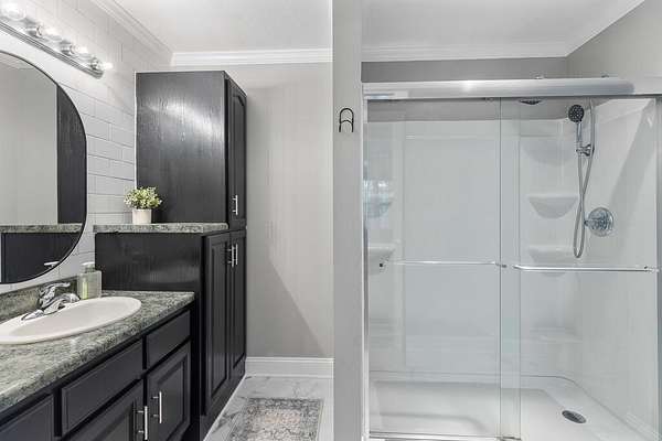 - Bathroom Mirror(s), Built-In Features, Ceiling Fan(s), Crown Molding, Eat-In Kitchen, High Speed Internet, Laminate Counters, Pantry, Primary Downstairs, Walk-In Shower
