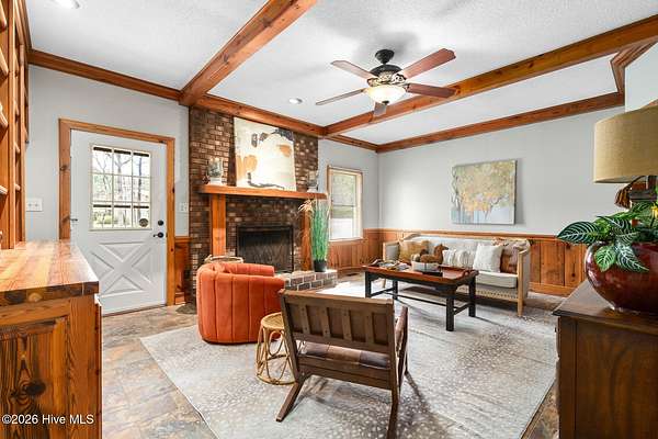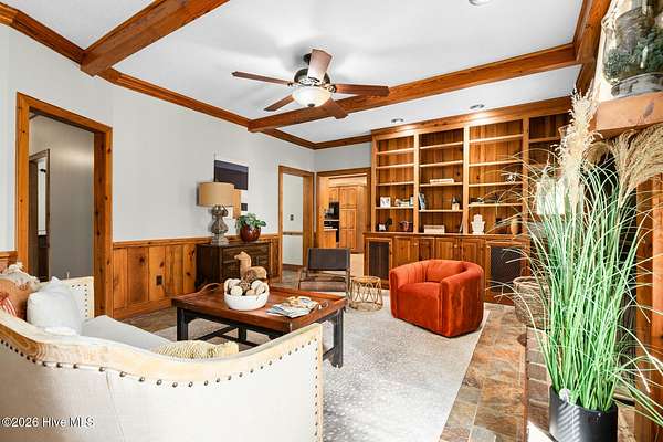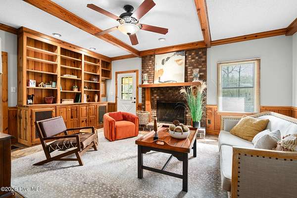 - Bookcases, Ceiling Fan(s), Eat-In Kitchen, Entrance Foyer, Gas Log, Kitchen Island, Master Downstairs, Mud Room, Walk-In Closet(s), Walk-In Shower