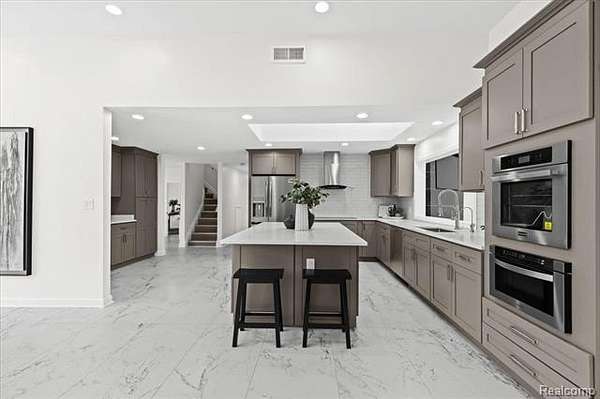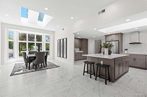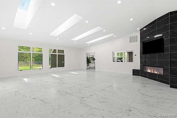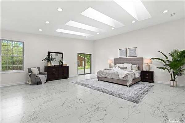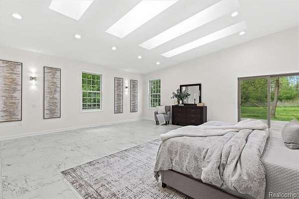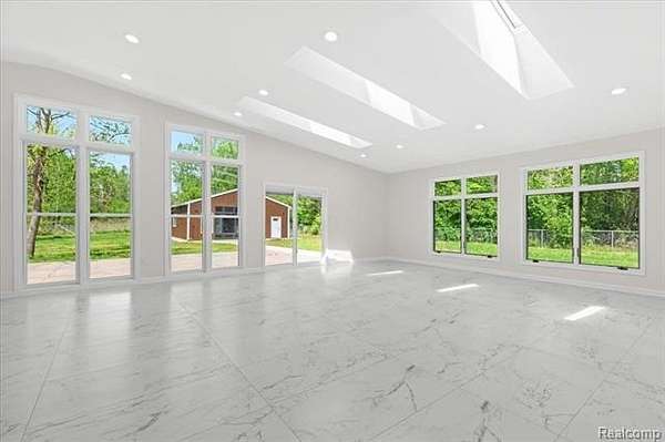 Welcome to 49712 Geddes! This beautifully renovated property sits on just under 2 acres and offers a spacious layout with approximately 4,000 SQ FT of living space. Enjoy abundant natural light streaming through floor-to-ceiling windows and over 10 skylights throughout the home. The kitchen features stainless steel appliances, a double oven, a floating island, and ample cabinet and counter space. Relax by the floor-to-ceiling black marble surround fireplace in the living room, which also opens to a back patio via a door wall. The primary bedroom is a retreat with recessed lighting, skylights, and an ensuite bathroom that includes a double vanity and jacuzzi tub. Another door wall from the primary bedroom leads to the back patio. All additional bedrooms are generously sized, offering plenty of closet space and natural light. Outside, the fenced backyard provides privacy and space for outdoor activities. A highlight of the property is the 2,000 SQ FT pole barn, which is commercially heated and cooled, perfect for storage, a workshop, etc. Additional features include a 2-car-attached garage, an encapsulated crawl space and no HOA allowing you the freedom to personalize the home as you need. School of choice is available for surrounding schools such as Achieve, Star, South Canton, Experience, Etc. Schedule a showing today! BTVAI