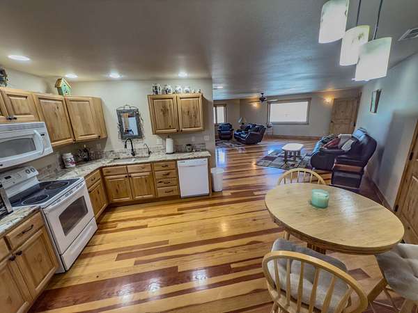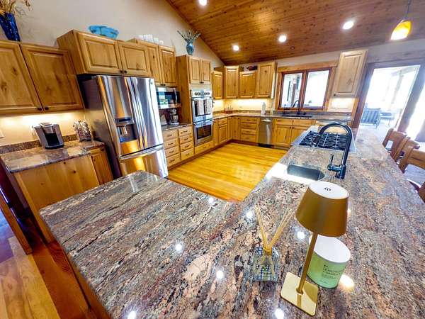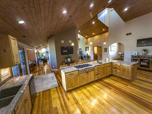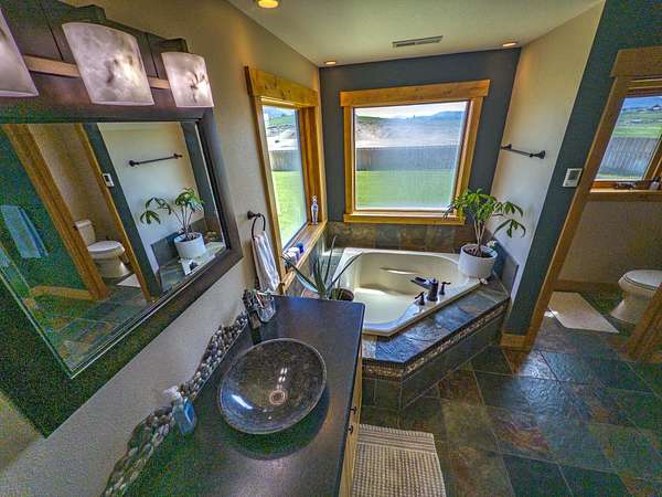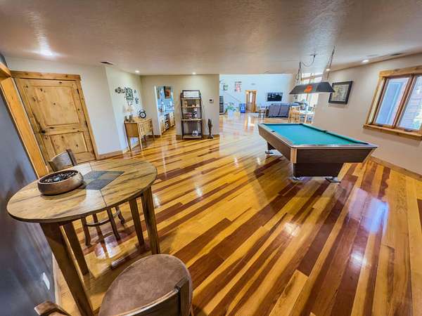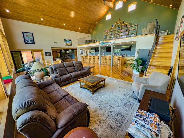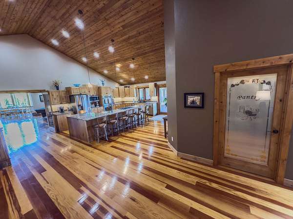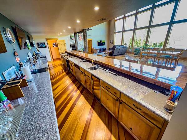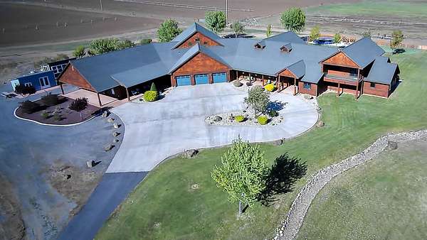 Welcome to a residence that redefines luxury living in Klamath Falls. Set on 27 irrigated acres surrounded by expansive farmland, this private retreat offers a rare blend of elegance and functionality. The main home and separate guest wing (4 bed/3 bath with private entrance) are connected by a spacious recreation room featuring a full bar, pool table, multiple TVs, and a cozy loft beneath 28' vaulted tongue-and-groove ceilings. The gourmet kitchen boasts granite countertops, alder cabinets, and stainless steel appliances, all oriented to enjoy the stunning views and open interaction with guests. The main-floor primary suite includes a fireplace, jetted tub, tile shower, and heated tile flooring. The large insulated shop, ample storage, and walk-in closets round out the property's offerings. Only 15 minutes from downtown Klamath Falls and approximately 90 minutes from commercial air travel in Medford, the estate offers both seclusion & convenience to shopping, dining, and recreation.
