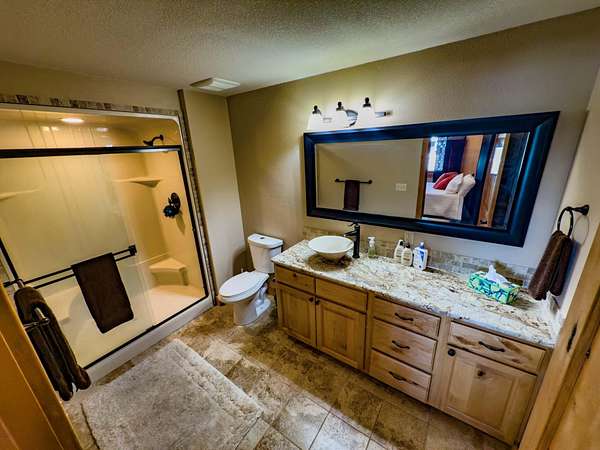 - Ceiling Fan(s), Central Vacuum, Double Vanity, Dual Flush Toilet(s), Fiberglass Stall Shower, Fireplace, Granite Counters, High Speed Internet, Kitchen Island, Linen Closet, Open Floorplan, Pantry, Primary Downstairs, Smart Light(s), Soaking Tub, Spa/Hot Tub, Tile Shower, Vaulted Ceiling(s), Walk-In Closet(s), Wet Bar, Wired For Data, Wired For Sound