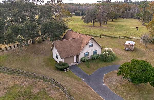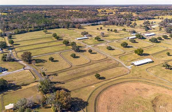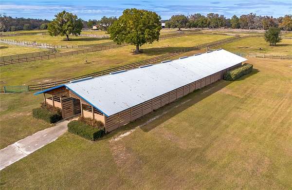 Dreaming of taking your equestrian venture to the next level? Welcome to this extraordinary 100-acre farm, where turnkey infrastructure meets peaceful countryside living! Nestled just a short drive from both HITS and the World Equestrian Center (WEC) and just minutes from Ocala and I-75, this property is perfectly positioned to take advantage of everything Ocala has to offer. The property features multiple gated entries, each following a paved driveway that continues throughout the property to ensure smooth access to every portion of the farm. Rolling green pastures and paddocks stretch out in every direction, each thoughtfully designed to include their own mature oak trees for much needed shade. Five high-quality barns are established on the farm, currently offering a total of 64 stalls combined, including a smaller 7-stall barn that would be ideal for stallions or foaling. A turf gallop track is ideal for conditioning year-round, and the farm also includes a eurocizer, round pen, and ample open space to train. This farm is designed with serious equestrian operations in mind from start to finish. Residences include a warm, welcoming A-frame main home with vaulted ceilings, a stone fireplace, and sunlit gathering spaces. The open kitchen flows easily into the living and dining areas, while the primary suite on the main floor provides privacy and retreat. A separate office building supports business operations, and a double-wide mobile home serves as the on-site manager's residence, completing the property's thoughtful layout. Whether you're launching a training operation, expanding an existing equine business, or seeking a private haven with unmatched infrastructure, this estate is a rare opportunity in one of Florida's most prestigious equestrian regions. Smaller acreage options may be available--please contact the listing agent for details.