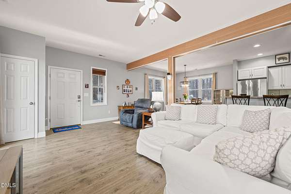 8.29 private acres. Custom 3-bedroom, 2.5-bath home in a prime location, just minutes to Tanger Outlets and downtown. This thoughtfully designed home blends comfort, quality, and functionality. The main level features engineered wood floors, exposed beams for a warm, inviting feel, and a spacious primary suite with a zero-entry shower. The kitchen offers granite countertops, tile backsplash, farmhouse sink, LP gas cooktop, and electric oven-perfect for everyday living and entertaining. Anderson Series 100 windows and patio doors provide abundant natural light throughout. A loft/sitting area adds flexible living space, along with ample storage throughout the home. Enjoy peace of mind with a dual-zone heat pump, sealed crawl space, Hardy Board siding, and a reverse osmosis and iron filtration system servicing the refrigerator and icemaker. Outdoor features include approximately 2 cleared acres with 6 wooded acres, a golf-cart trail, covered breezeway to the garage, 30-amp generator receptacle, motion-activated exterior lighting, and an outbuilding. Well produces approximately 20 gallons per minute with pressure tank, and septic was pumped in 2025. A rare opportunity to enjoy privacy, convenience, and quality construction all in one exceptional property.