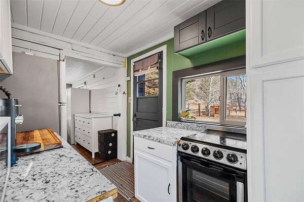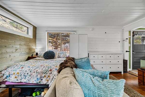 Riverfront mountain retreat with rare access to the North Fork of the South Platte. This updated cabin sits on nearly two acres in an ideal setting--flat, fully fenced, and backing directly to the river with a private gate providing easy access to the water. Tucked just off Highway 285 for year-round access, the property offers both immediate enjoyment and long-term potential, with quick and convenient access to Bailey for local shopping, dining, and everyday essentials. Inside, the living space is warm and inviting, finished with beetle-kill pine accents and original hardwood flooring. The galley kitchen includes all appliances and flows into a comfortable living/sleeping area. Climate control is handled by a newer gas stove with remote, along with a wall furnace in the kitchen. The updated 3/4 bath is accessed through a stylish barn door. Recent improvements include new siding (2018), new windows and doors (2019), and a sliding glass door that opens to a newer 16' x 10' partially covered wood patio overlooking a peaceful meadow with frequent wildlife activity. The property has seen extensive fire mitigation and is well set up for storage and future expansion, with two sheds (one with electricity) and a heated pump house. The owned propane tank, updated 1000-gallon septic with new line and cleanouts, and ample parking on the flat lot make this an easy property to enjoy year-round. Located in historic Grant, CO, this amazing mountain gem is less than five minutes from Pike National Forest and offers a true Colorado lifestyle. Just a short walk away is The Shaggy Sheep, open year-round for coffee, meals, or a drink at the bar. With river frontage, highway access, proximity to Bailey, and room to build a future dream home, this is a versatile mountain getaway--or rebuild opportunity--that's becoming increasingly hard to find.