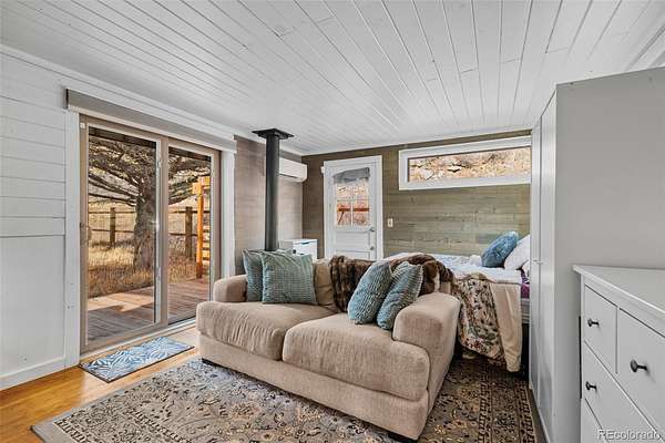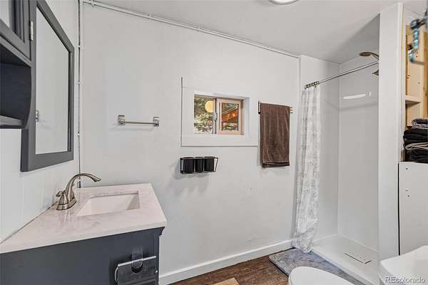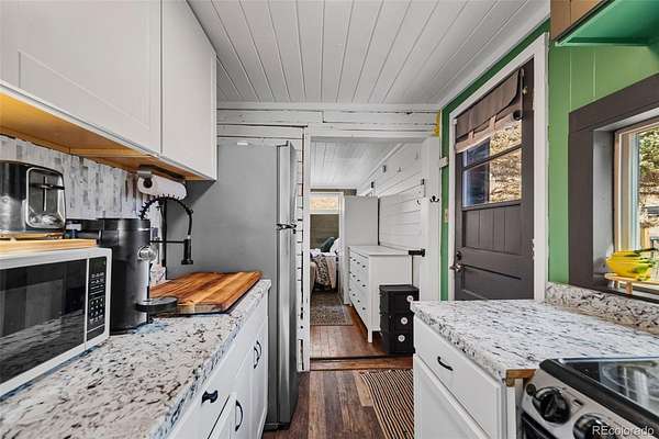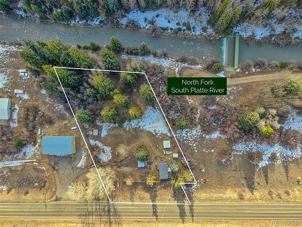 Riverfront mountain retreat with rare access to the North Fork of the South Platte. This updated cabin sits on nearly two acres in an ideal setting--flat, fully fenced, and backing directly to the river with a private gate providing easy access to the water. Tucked just off Highway 285 for year-round access, the property offers both immediate enjoyment and long-term potential, with quick and convenient access to Bailey for local shopping, dining, and everyday essentials. Inside, the living space is warm and inviting, finished with beetle-kill pine accents and original hardwood flooring. The galley kitchen includes all appliances and flows into a comfortable living/sleeping area. Climate control is handled by a newer gas stove with remote, along with a wall furnace in the kitchen. The updated 3/4 bath is accessed through a stylish barn door. Recent improvements include new siding (2018), new windows and doors (2019), and a sliding glass door that opens to a newer 16' x 10' partially covered wood patio overlooking a peaceful meadow with frequent wildlife activity. The property has seen extensive fire mitigation and is well set up for storage and future expansion, with two sheds (one with electricity) and a heated pump house. The owned propane tank, updated 1000-gallon septic with new line and cleanouts, and ample parking on the flat lot make this an easy property to enjoy year-round. Located in historic Grant, CO, this amazing mountain gem is less than five minutes from Pike National Forest and offers a true Colorado lifestyle. Just a short walk away is The Shaggy Sheep, open year-round for coffee, meals, or a drink at the bar. With river frontage, highway access, proximity to Bailey, and room to build a future dream home, this is a versatile mountain getaway--or rebuild opportunity--that's becoming increasingly hard to find.