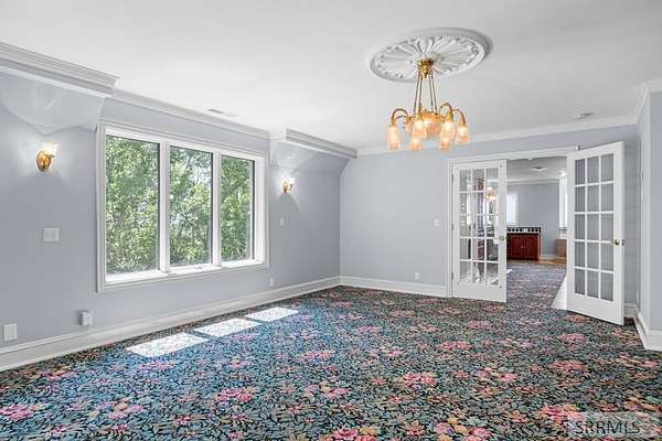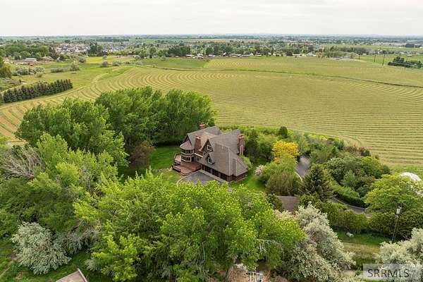Discover timeless elegance and total seclusion in this exceptional 4-bedroom, 4-bath custom chateau nestled on over 5.7 beautifully wooded acres in Idaho Falls. Surrounded by more than 500 mature trees and offering sweeping views of the valley, this estate combines architectural charm with rare privacy. A striking copper front door sets the stage for the craftsmanship and unique details found throughout the home. Inside, you'll find a dramatic spiral staircase, four fireplaces, formal dining room, wet bar, and spacious living areas designed for both grand entertaining and quiet retreat. The expansive kitchen is a dream for culinary enthusiasts, featuring an oversized range, built-in ice machine, wine refrigerator, and indoor grill-ideal for preparing meals and hosting gatherings. Outdoors, secret gardens are artfully woven into the landscaping, creating a sense of enchantment and discovery. With water rights, the grounds are ideal for gardening and to simply enjoy the natural beauty of the established property. Additional amenities include a 3-car attached garage, a second garage 20x24, 50x40 shop, 20x50 greenhouse, and a garden shed. Elegant, private, and rich with possibility, this Idaho Falls chateau is more than a home-it's a legacy.