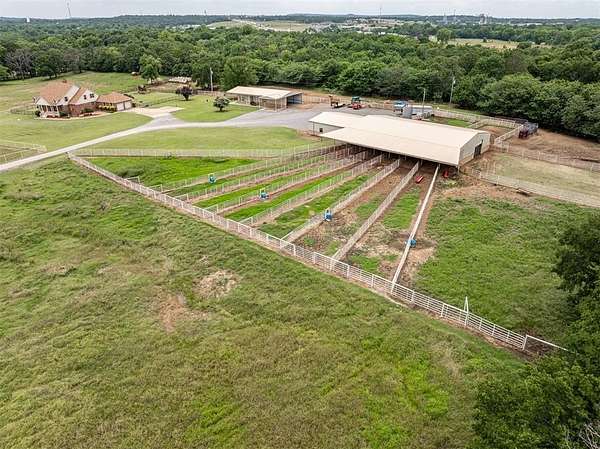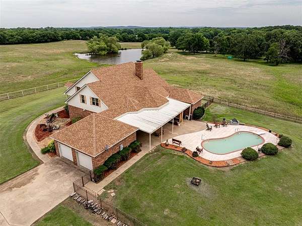 Welcome to the Curry Hereford Ranch - A Turnkey Showplace Just Outside McAlester, Oklahoma! This exceptional 60-acre ranch offers the perfect blend of luxury living, agricultural functionality, and unbeatable location! Tucked away at the end of a quiet dead-end road for ultimate privacy, yet just minutes from Highway 69 and the conveniences of McAlester. The main residence is a spacious two-story home featuring 4 bedrooms, 3.5 bathrooms, and three living areas--perfect for entertaining or large family gatherings. The woodworking is a must-see. Enjoy a large walk-in pantry, a dedicated utility room, and a stunning breakfast nook. The primary bedroom has a fireplace, sitting area, private office, spacious bathroom with huge tiled-in shower and massive walk-in closet. A charming patio room opens onto a covered outdoor space, ideal for relaxing poolside by the in-ground swimming pool. The ranch is fenced and cross-fenced and set up for livestock with a special focus on show cattle. The crown jewel of the working infrastructure is a 70x80 steel-framed, spray-foam insulated cattle barn complete with electric and water, 18 indoor pens, 8 outdoor runs equipped with automatic waterers, and 2 larger pens. The barn also includes a 30x40 sale ring, 10x20 washrack with hot water, and an attached tack and feed room makes this ideal for hosting sales or managing a serious cattle operation. Need room for guests, multi-family living, or rental? A guest home newly built in 2023 offers 2 bed, 1 bath, a covered front porch, and an attached carport perfect for boats, RVs, or large equipment. The landscape is picturesque with a sizable pond, beautiful pastureland-divided into multiple pastures, towering trees- making it both functional and scenic. Massive deer frequent the creek and woods on property. Whether you're running a purebred cattle operation or simply seeking a private, spacious retreat, Curry Hereford Ranch delivers. Seller is related to listing agent
