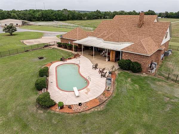 Welcome to the Curry Hereford Ranch - A Turnkey Showplace Just Outside McAlester, Oklahoma! This exceptional 60-acre ranch offers the perfect blend of luxury living, agricultural functionality, and unbeatable location! Tucked away at the end of a quiet dead-end road for ultimate privacy, yet just minutes from Highway 69 and the conveniences of McAlester. The main residence is a spacious two-story home featuring 4 bedrooms, 3.5 bathrooms, and three living areas-perfect for entertaining or large family gatherings. The woodworking is a must-see. Enjoy a large walk-in pantry, a dedicated utility room, and a stunning breakfast nook. The primary bedroom has a fireplace, sitting area, private office, spacious bathroom with huge tiled-in shower and massive walk-in closet. A charming patio room opens onto a covered outdoor space, ideal for relaxing poolside by the in-ground swimming pool. The ranch is fenced and cross-fenced and set up for livestock with a special focus on show cattle. The crown jewel of the working infrastructure is a 70x80 steel-framed, spray-foam insulated cattle barn complete with electric and water, 18 indoor pens, 8 outdoor runs equipped with automatic waterers, and 2 larger pens. The barn also includes a 30x40 sale ring, 10x20 washrack with hot water, and an attached tack and feed room makes this ideal for hosting sales or managing a serious cattle operation. Need room for guests, multi-family living, or rental? A guest home newly built in 2023 offers 2 bed, 1 bath, a covered front porch, and an attached carport perfect for boats, RVs, or large equipment. The landscape is picturesque with a sizable pond, beautiful pastureland-divided into multiple pastures, towering trees- making it both functional and scenic. Massive deer frequent the creek and woods on property. Whether you're running a purebred cattle operation or simply seeking a private, spacious retreat, Curry Hereford Ranch delivers. Seller is related to listing agent