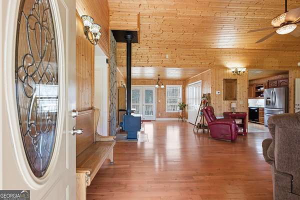 IMMACULATELY MAINTAINED CRAFTSMAN RANCH ON NEARLY 2 ACRES PLUS OUTDOOR RECREATION SPACES TO ENJOY...Nestled within a serene, nature-rich community with NO HOA on the outskirts of Cornelia, Deer Track offers the perfect blend of rustic elegance and modern versatility. Perched on nearly 2 expansive acres, where mature trees provide a secluded sanctuary and effortless curb appeal welcomes you home. Step inside to find an Open-Concept Main Living space defined by soaring vaulted ceilings finished in rich wood, natural lighting, and fresh interior paint anchored by the warmth of a cozy Buck wood stove. The heart of the home is the spacious Living Room making a perfect spot for family and friend gatherings. Super Functional Kitchen featuring an abundance of cabinetry, smooth solid-surface countertops, and a full appliance package. Dedicated Dining area for intimate meals or hosting a crowd connects onto the back deck overlooking your private, wooded backyard. Large Primary Suite that boasts its own wooded vaulted ceilings and a spa-like ensuite complete with double vanities, a whirlpool bathtub, a separate shower, and a massive walk-in closet. 2 additional Guest Bedrooms and a 2nd full bathroom round out the main floor, ensuring plenty of comfort for family and friend visits. FULL, Finished Basement unveils a world of possibility for multigenerational living or the ultimate entertainment hub. This level features a massive 4th bedroom and a 3rd full bathroom, alongside a sprawling Family Room that can easily adapt into a media room, workout space, office, or playroom. For those seeking a unique aesthetic, the dedicated "man cave" exudes a cool, moody vibe with the tin ceiling and rustic barn doors, making it the standout spot for Sunday games or quiet retreats. This home is LOADED with upgrades inside and out - fresh paint, new carpet in guest bedrooms, two laundry hook ups (garage and Primary walk-in closet), new basement HVAC to name a few! Backyard is expansive and partially fenced for safety of furry friends and children playing! Beautiful and usable land for all outdoor activities - terraced gardens with water spigot, play set, firepit, RV/Boat storage, multiple outbuildings for yard equipment storage or other endless possibilities! Contact our team for your private viewing!