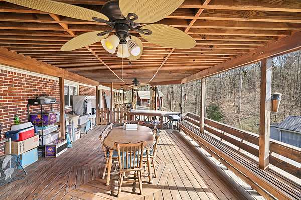 Set on 3.40 beautiful acres, this 5-bedroom, 2-bath property offers 2,330 square feet in the main home plus a fully equipped guest house, delivering flexibility, privacy, and endless possibilities. The main house begins with a charming covered front porch to welcome you inside. The inviting living room features hardwood floors and a cozy fireplace. The layout flows seamlessly into the dining area, which opens directly onto a covered deck, perfect for morning coffee, outdoor dinners, or simply enjoying peaceful views of the surrounding acreage. The kitchen combines character and functionality with butcher block countertops, white cabinetry, and convenient roll-out storage. Upstairs, the attic has been finished to provide additional living space ideal for a home office, creative studio, or even an extra bedroom. The walkout basement adds even more versatility, offering space for a media room, gym, workshop, or additional storage. The second home is perfect for multigenerational living, rental income, or long-term guests, and includes 1 bedroom, 1 bath, a kitchen, and a comfortable living area on the main level, plus its own walkout basement for added space and flexibility. Outside, you'll find a covered carport and a storage shed, along with plenty of open land to garden, entertain, or simply enjoy the privacy of country living. With acreage, multiple living spaces, and room to grow, this unique property offers the perfect blend of charm, function, and opportunity. Up to 1% lender credit on the loan amount when buyer uses Seller's Preferred Lender.