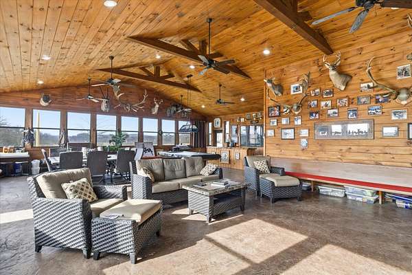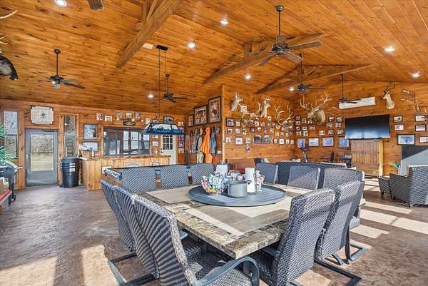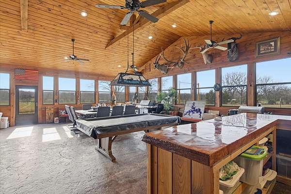 197 unrestricted acre ranch & hunting paradise with Beaver Creek frontage! The home features 2 nice sized bedrooms with 1 large bathroom with a walk in tile shower plus a dual vanity set up with tons of counter space! The great room/man cave area, AKA the place you'll spend all your time, is bright, open & has all the rustic lodge vibes one could ask for! It provides excellent views of the sunrise/sunsets & of the large hayfield directly in front of the home. The living room is nice sized & is centrally located to allow easy access to every room of the house. The kitchen features a full set of appliances, lots of cabinets & counter space plus an eat in counter/bar area with a full set of barstools. Just off the kitchen you'll find a large walk in pantry/storage area, multiple freezers & the laundry area. The private well was just installed in summer of 2025, it was drilled to a depth of 350ft. Head outside & right out your back door you'll find yourself looking over Beaver Creek which provides excellent kayaking & fishing opportunities & you will have year round unrestricted access to it! The land offers a nice mix of hayfield, pasture & timbered ground & there's also 3 ponds on the property. The property is fenced & does have some cross fencing. There is also a fenced off section, approximately 1.25 acres, that has a large open sided hay barn. The whitetail deer & wild turkey on this property are abundant in quantity & have been well managed for age class & size for several years, check out the trophy pics & trail cam pics in the property photos! There is also an elevated Redneck Hunting blind that will be staying on the property. There are pages upon pages of things that could be written about this amazing property but it doesn't hold a candle to seeing it in person, walking the land & imagining all the possibilities this property has to offer! Don't wait, there's not another property like this one on the market!
