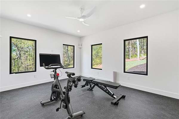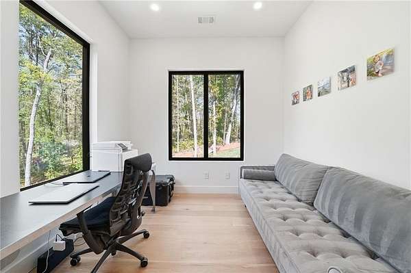 OPEN HOUSE Saturday 4/18 from 12-3:00 Sitting on 16.72 acres of endless possibilities, this home was built with modern luxury in mind! It boasts 4 bedrooms/3.5 baths + 3 office/flex spaces on the main level, French white oak wide plank flooring throughout, custom interior doors, Carrera marble mosaic floor tiles in all main level bathrooms, a stunning kitchen featuring Bosch appliances, two dishwashers, two sinks, double ovens, a butler's pantry with a built-in automated espresso machine, quartz countertops and custom cabinets. The basement has been newly finished to include a 4 person sauna built with tongue and groove clear vertical grain western red cedar that is equipped with automated ventilation system for consistent airflow and features a HUUM heater with wi-fi control allowing easy remote start and temperature management, a steam room featuring a Delta steam generator that provides constant on-demand steam and an auto-drain system for low maintenance (you can have a relaxing spa-like experience without having to leave home!), a full bathroom, a home gym with a Sonos speaker system, two large living/flex areas and plenty of unfinished space left for storage. The exterior features a standing seam metal roof (often referred to as a "lifetime" roof), Accoya wood accents (premium wood imported from New Zealand), Techo-Bloc Pavers, triple pane aluminum windows and exterior doors, an irrigation system, and an oversized garage for plenty of parking and storage space! This lot has room in the backyard for a future pool, offers amazing views and there is a flat area that overlooks Little Shoal Creek - it has been undisturbed and could make a beautiful location for a secluded cabin or recreational dream. The homeowner is willing to leave some of the furniture with the home.