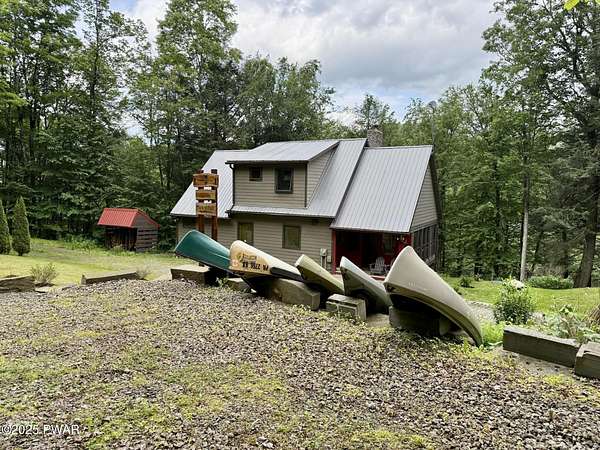 Rare Riverfront Lodge on the Legendary & Highly Sought After Monument Pool of the West Branch Delaware River. The Ultimate Outdoor Retreat! A truly rare opportunity to own a mostly furnished lodge-style home with 450 yards of direct frontage on the magical Monument Pool of the West Branch Delaware River. Set on over 4 private, wooded acres in the Pennsylvania mountains, this 4-bedroom, 2-bath home is finished in warm pine and built for comfort, connection to nature, and adventure in every season. The lodge features a screened porch, mid-deck, and lower patio overlooking the river, plus an open concept living space with a wood stove. Upstairs, you'll find generous bedrooms designed for peaceful relaxation, while the walk-out basement includes space for gear and fly-tying. A detached 2-car garage has room for cars or big toys, and all your outdoor essentials. Whether you love fishing, hunting, hiking, or simply relaxing by the water, this location delivers. Just downstream from the private waters of the West Branch Angler and steps from thousands of acres of PA State Game Lands, you'll have year-round access to trout fishing, hunting, and endless ways to enjoy the outdoors. Launch a boat from your own private property between Hale Eddy and Balls Eddy or explore nearby shops and dining. Bring your gear, stock the fridge, and settle in. Properties like this don't come around often--don't miss your chance to own a piece of riverfront paradise.